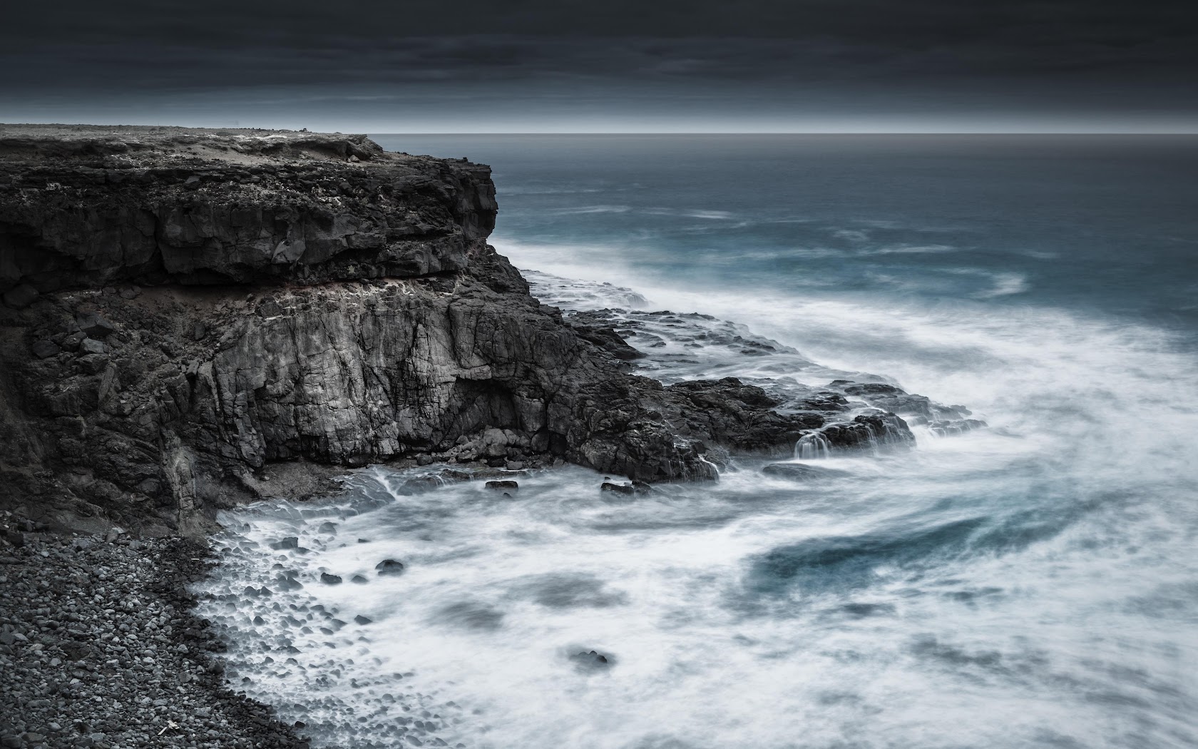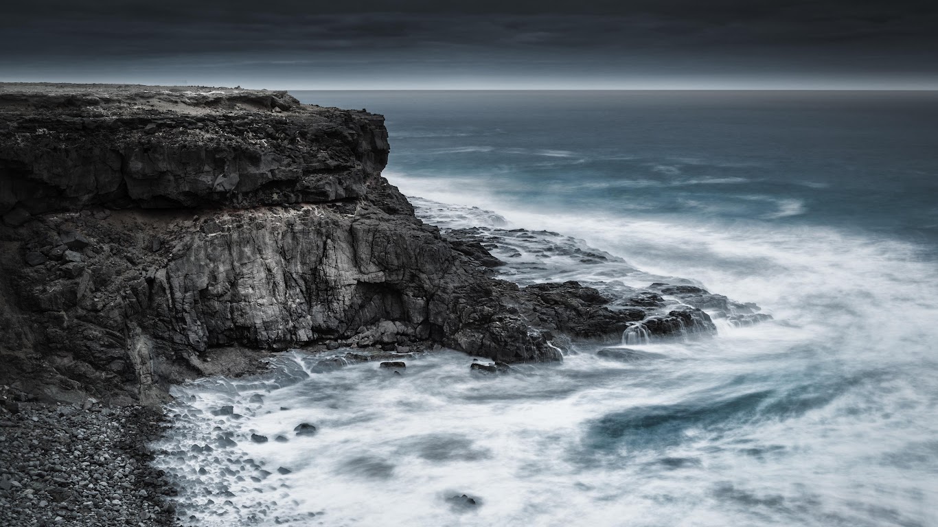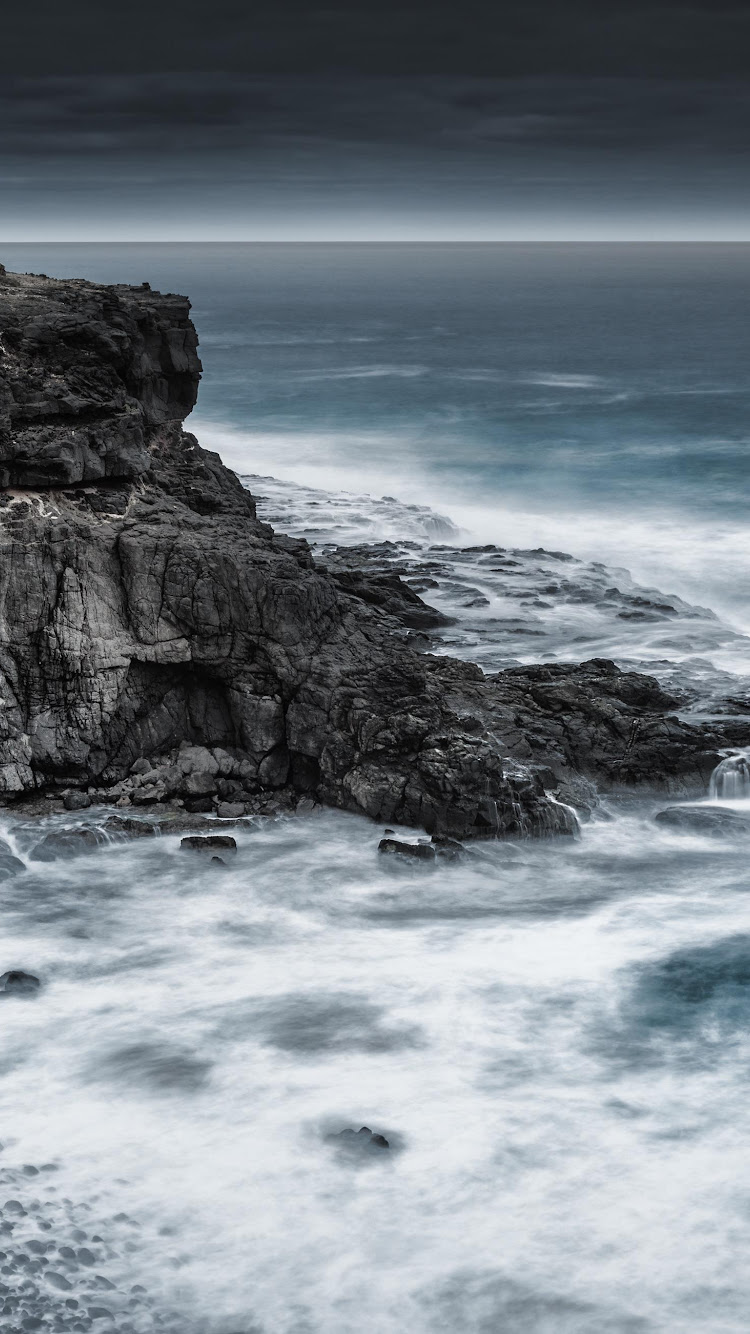 Coastal Landscape, Ocean Photography, Rocky Coastline, Moody Sky 4K Desktop Wallpaper