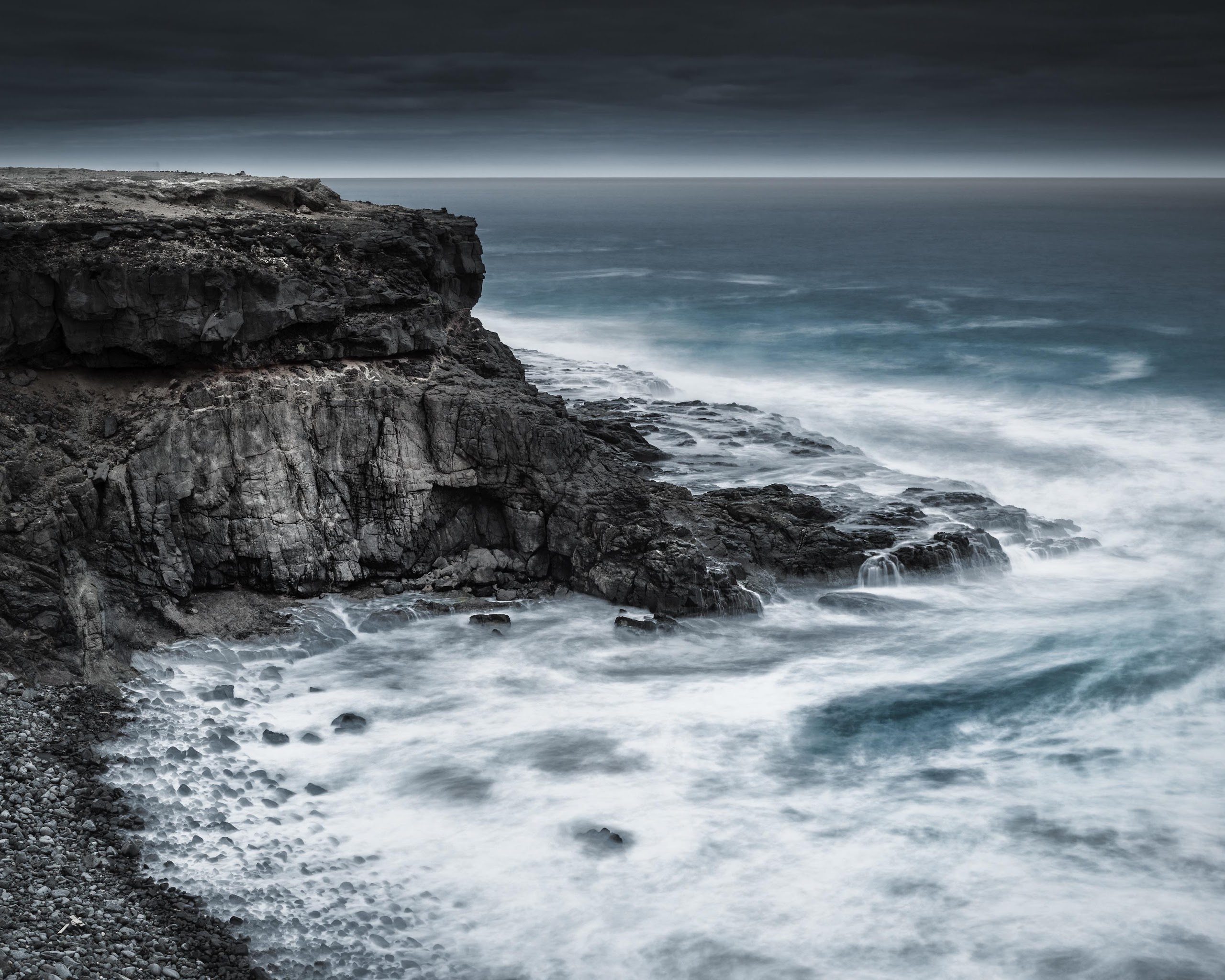 Coastal Landscape, Ocean Photography, Rocky Coastline, Moody Sky 4K Wallpaper Background (4000x2603)