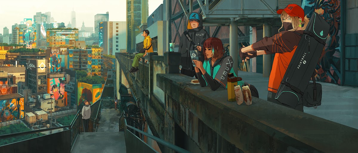 Cyberpunk, Cityscape, Anime, Rooftop 2K Desktop Wallpaper