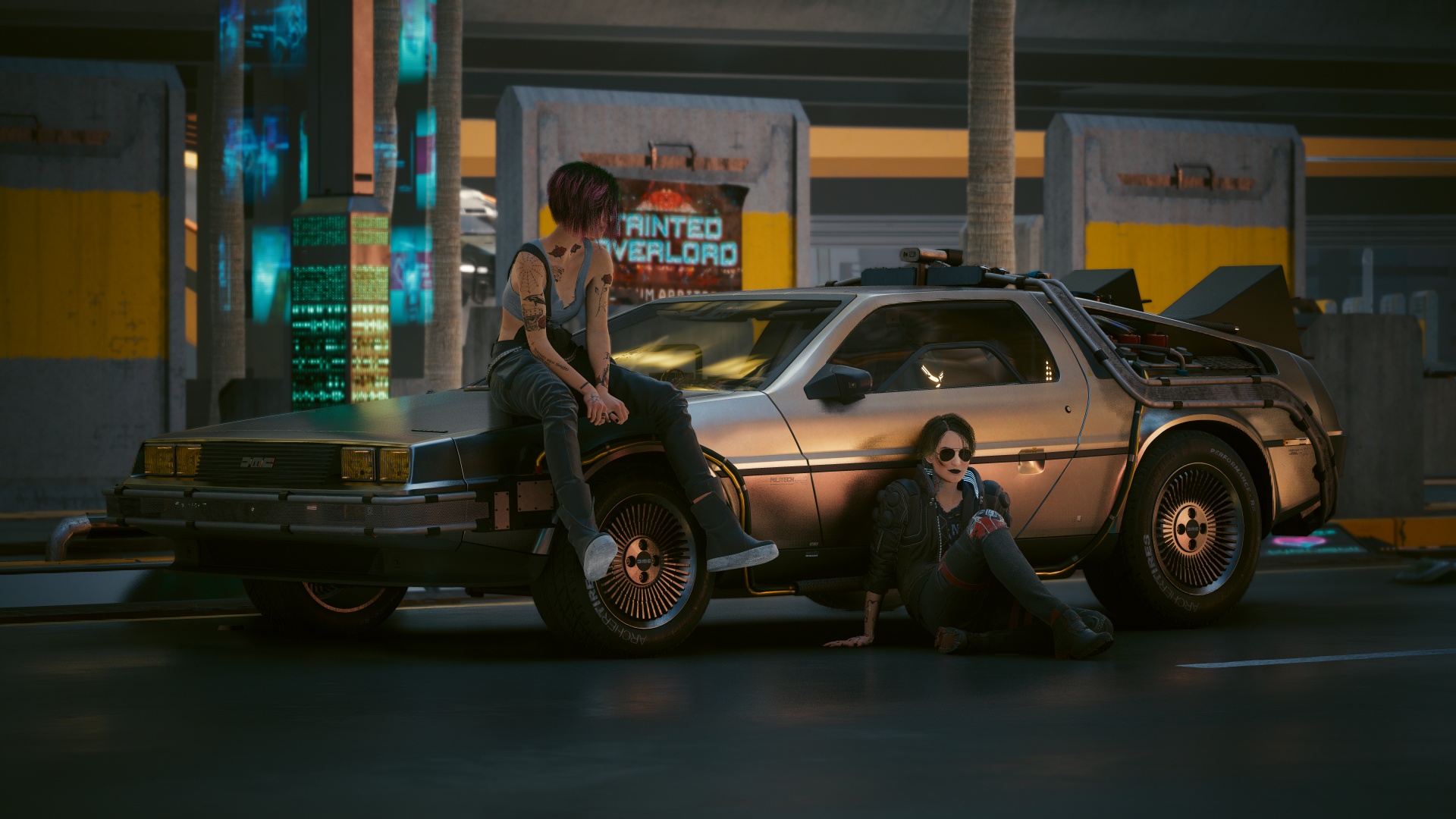 Cyberpunk, Delorean, Futuristic, Girls Full HD Desktop and Mobile Wallpaper Background with a maximum resolution of 1920x1080 px.