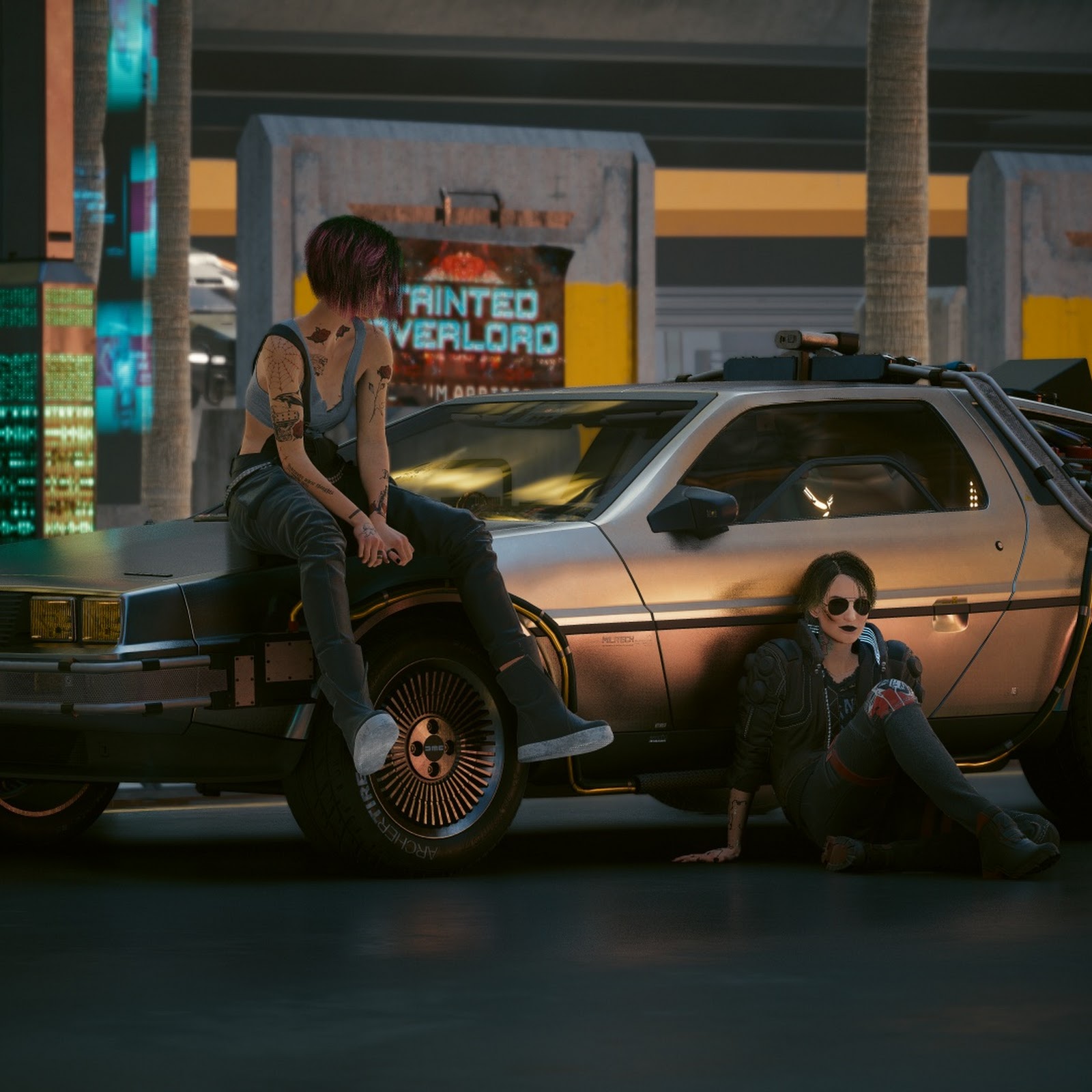 Cyberpunk, Delorean, Futuristic, Girls Full HD Phone Wallpaper