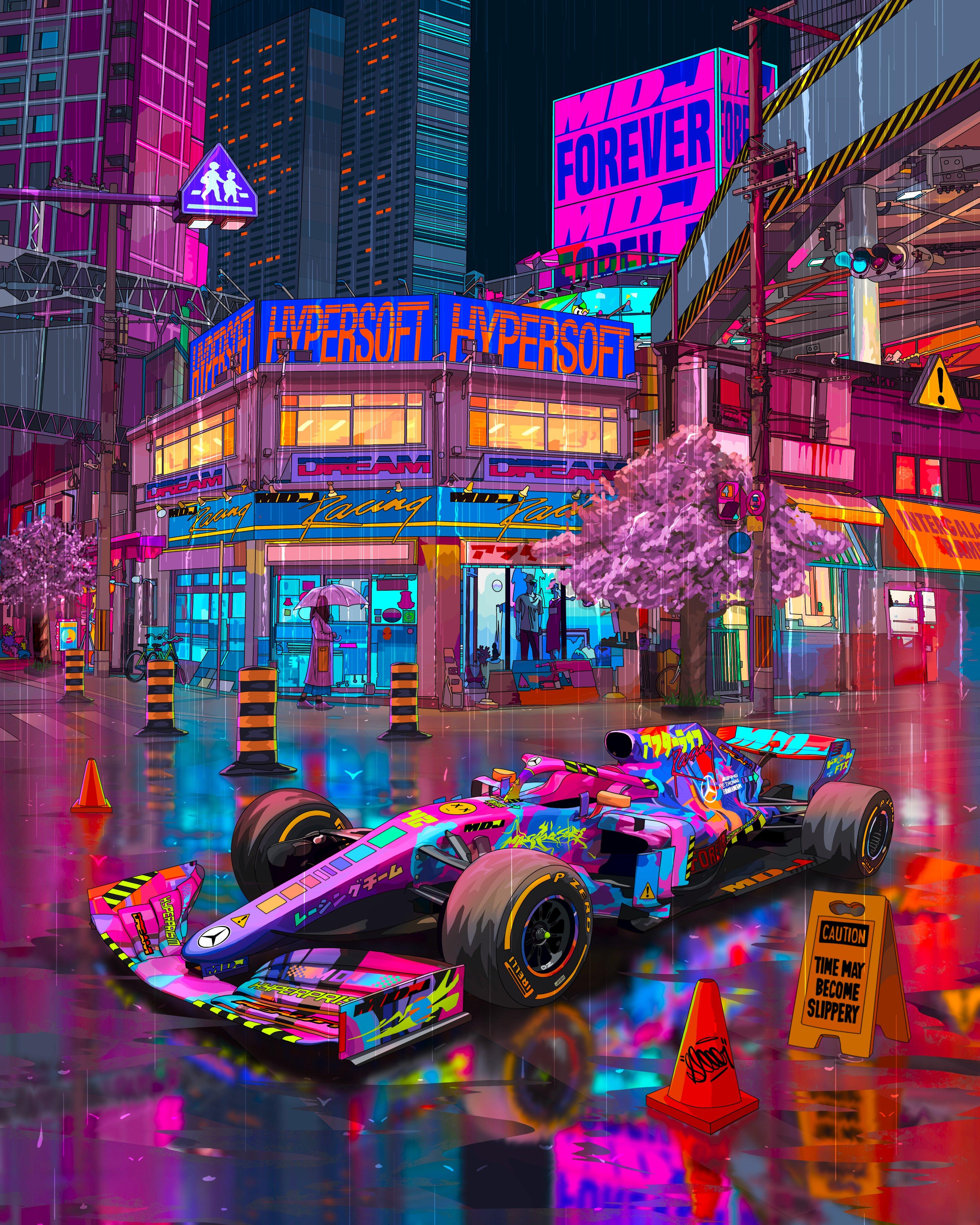 Cyberpunk, Formula One, Racing, Neon City 4K iPhone Wallpaper Background with a maximum resolution of 3277x4096 px.
