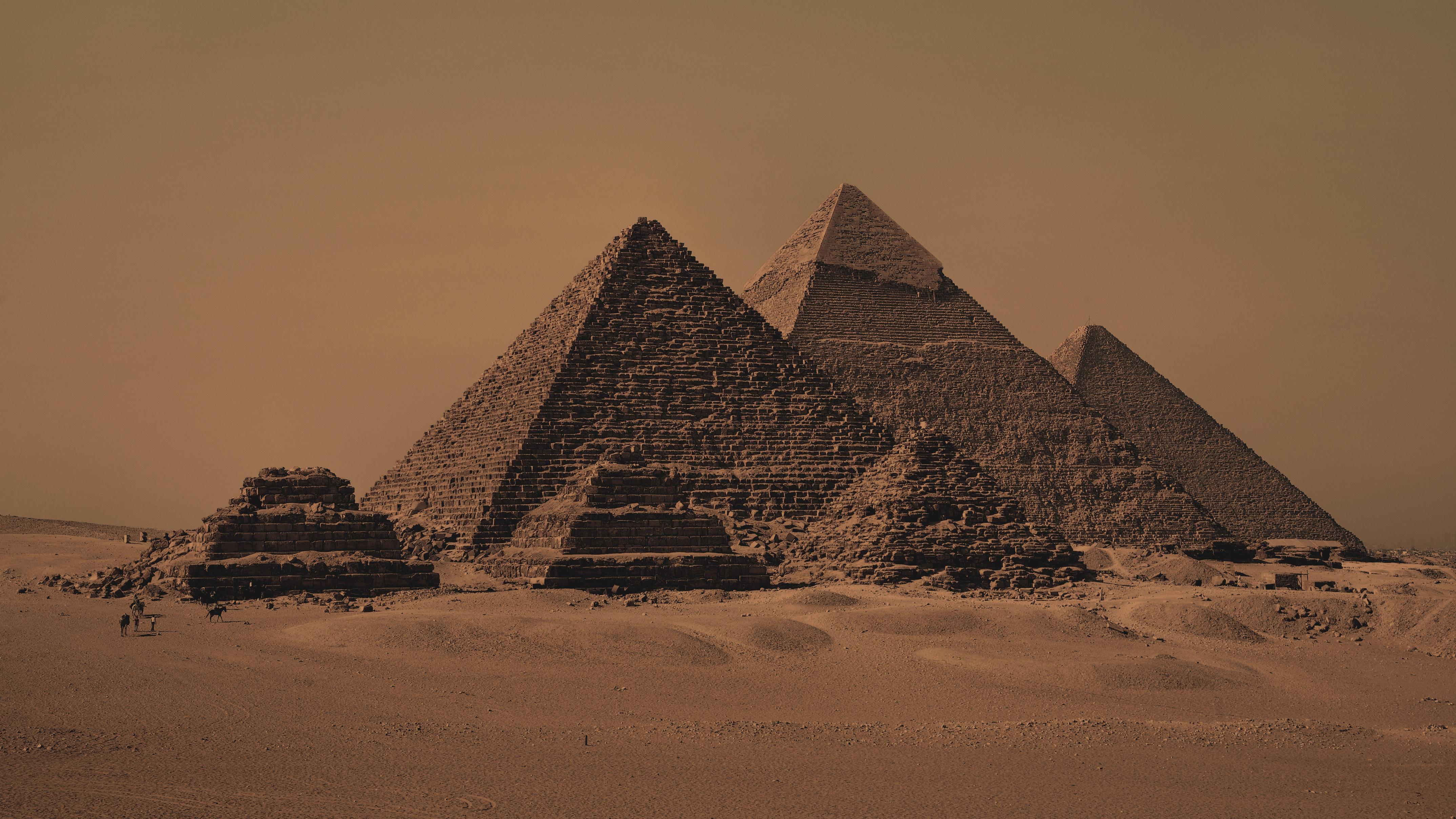 Egyptian Pyramids, Giza, Ancient Egypt, Landmark 4K Desktop and Mobile Wallpaper Background with a maximum resolution of 4296x2417 px.