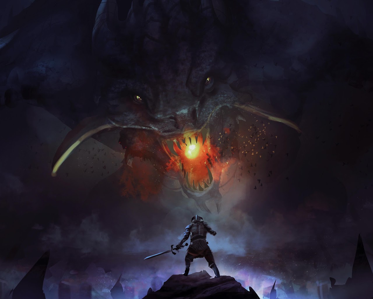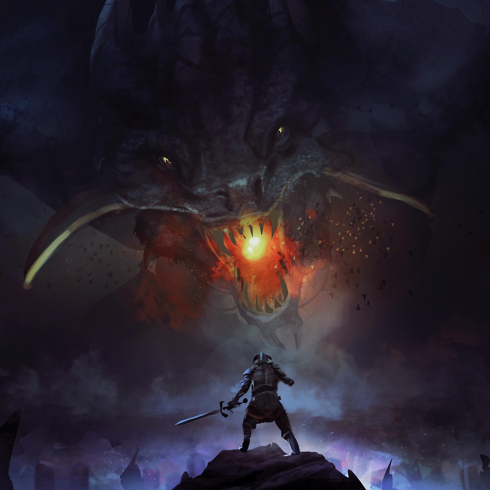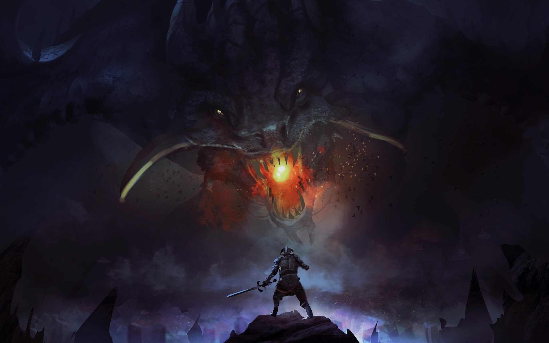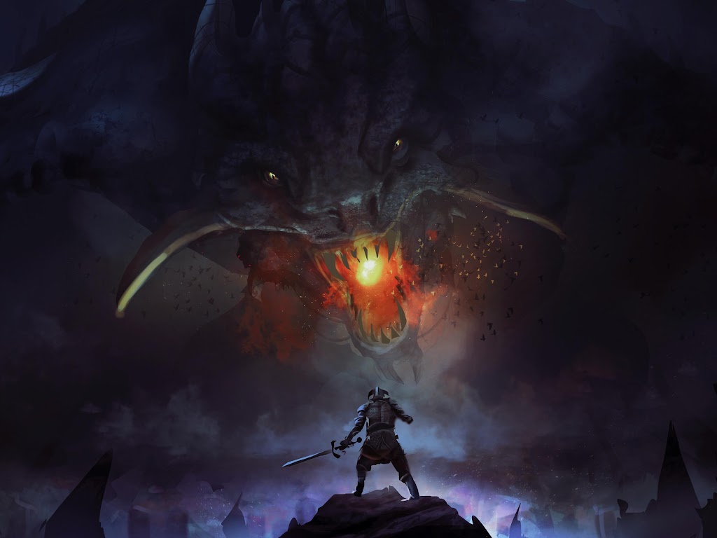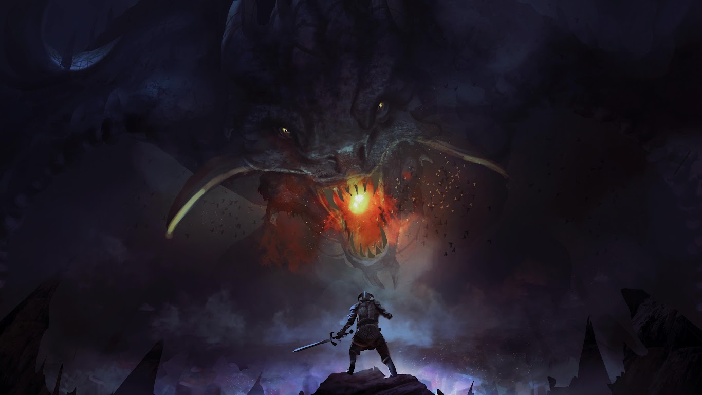 Fantasy Art, Dragon, Knight, Digital Painting 4K Desktop Wallpaper