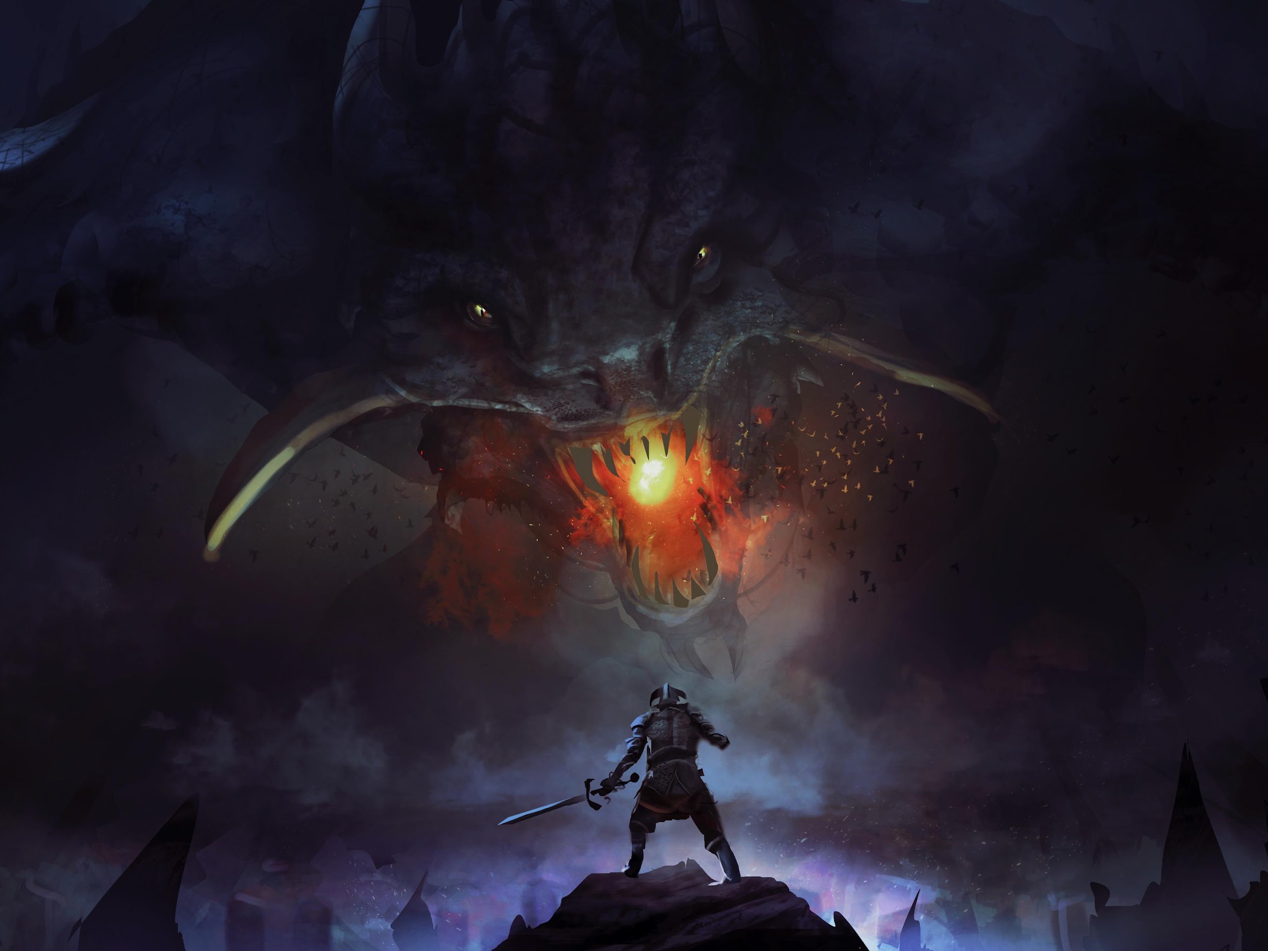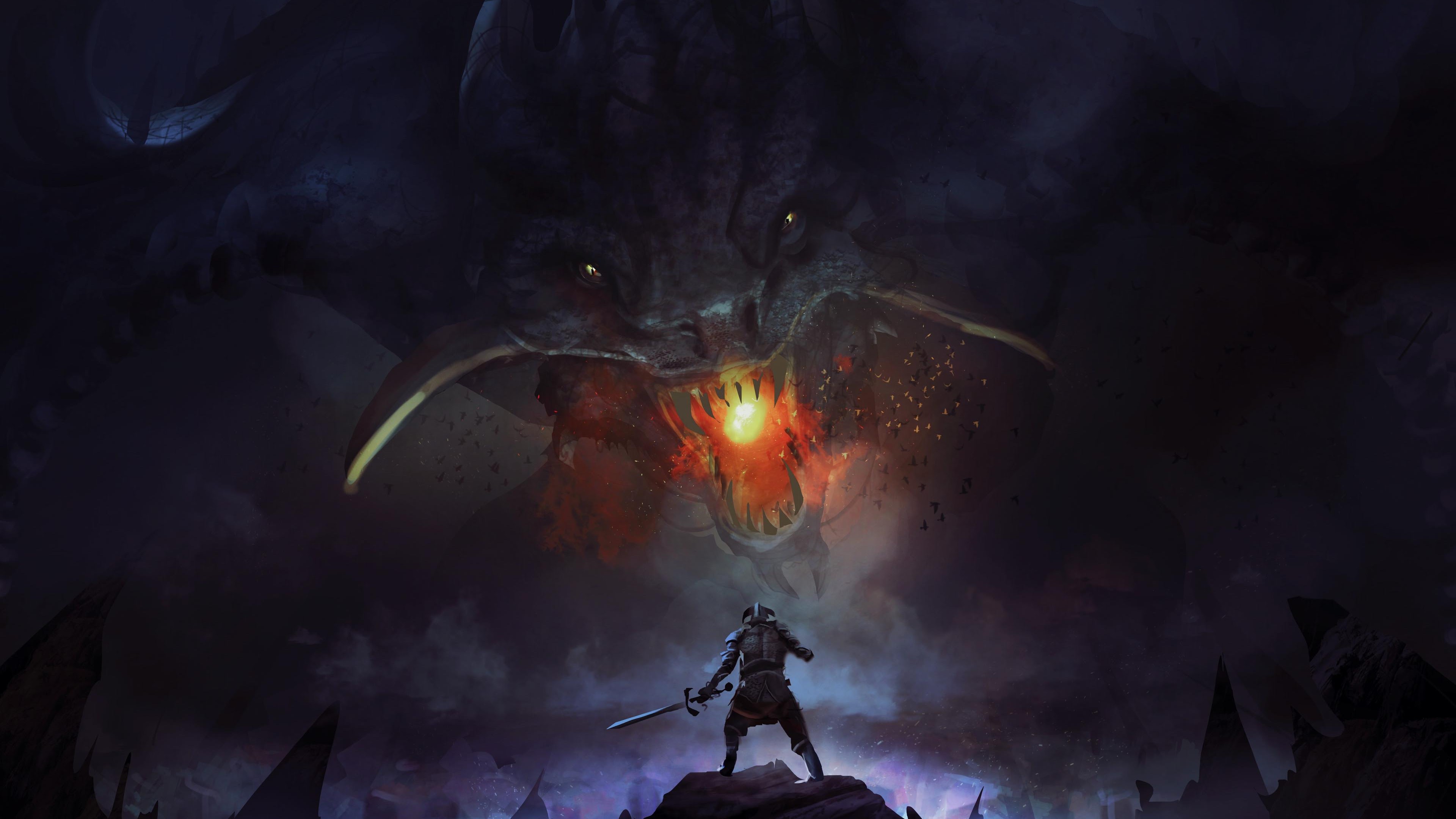 Fantasy Art, Dragon, Knight, Digital Painting 4K Desktop and Mobile Wallpaper Background with a maximum resolution of 3840x2240 px.