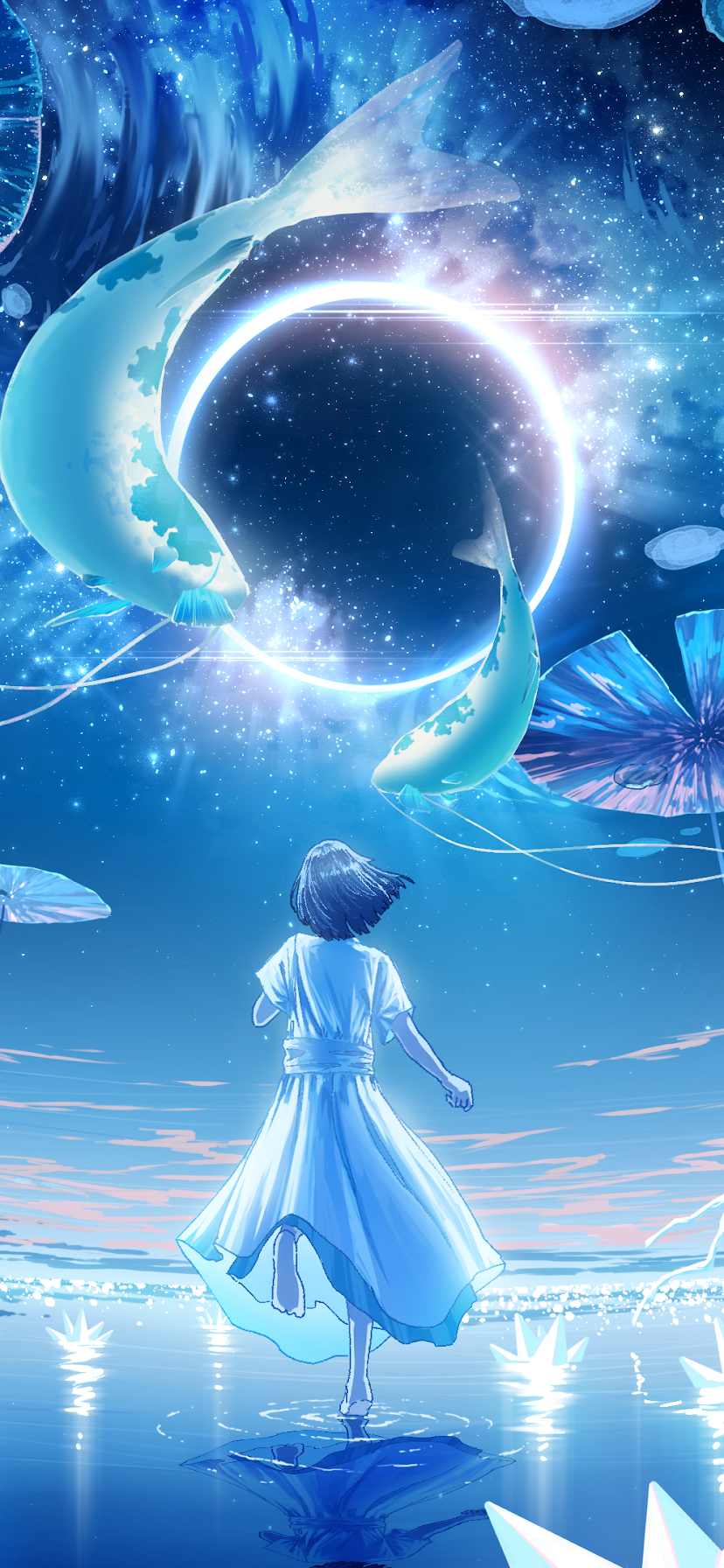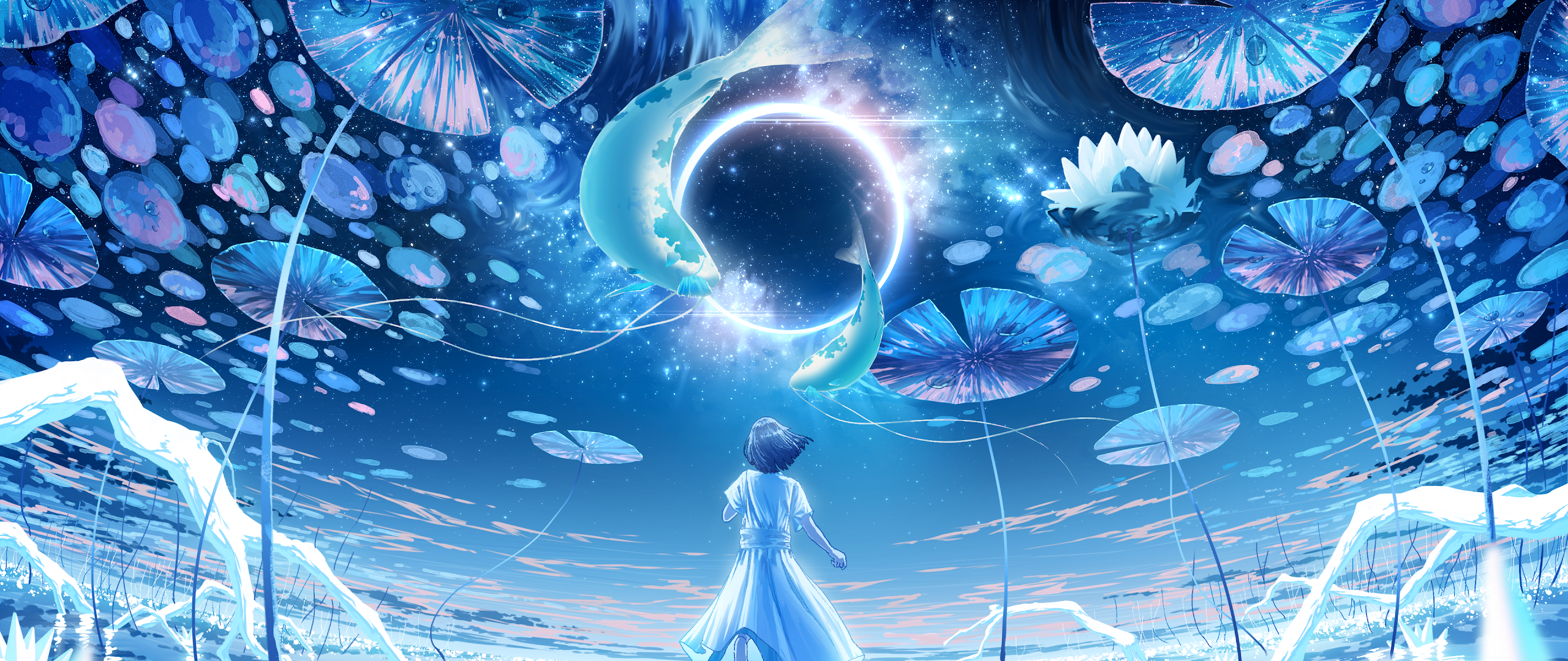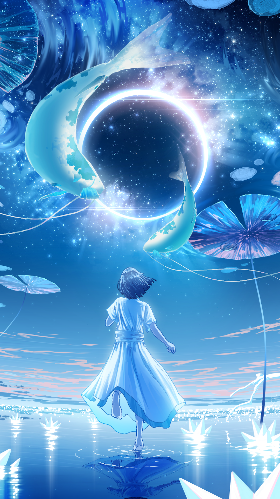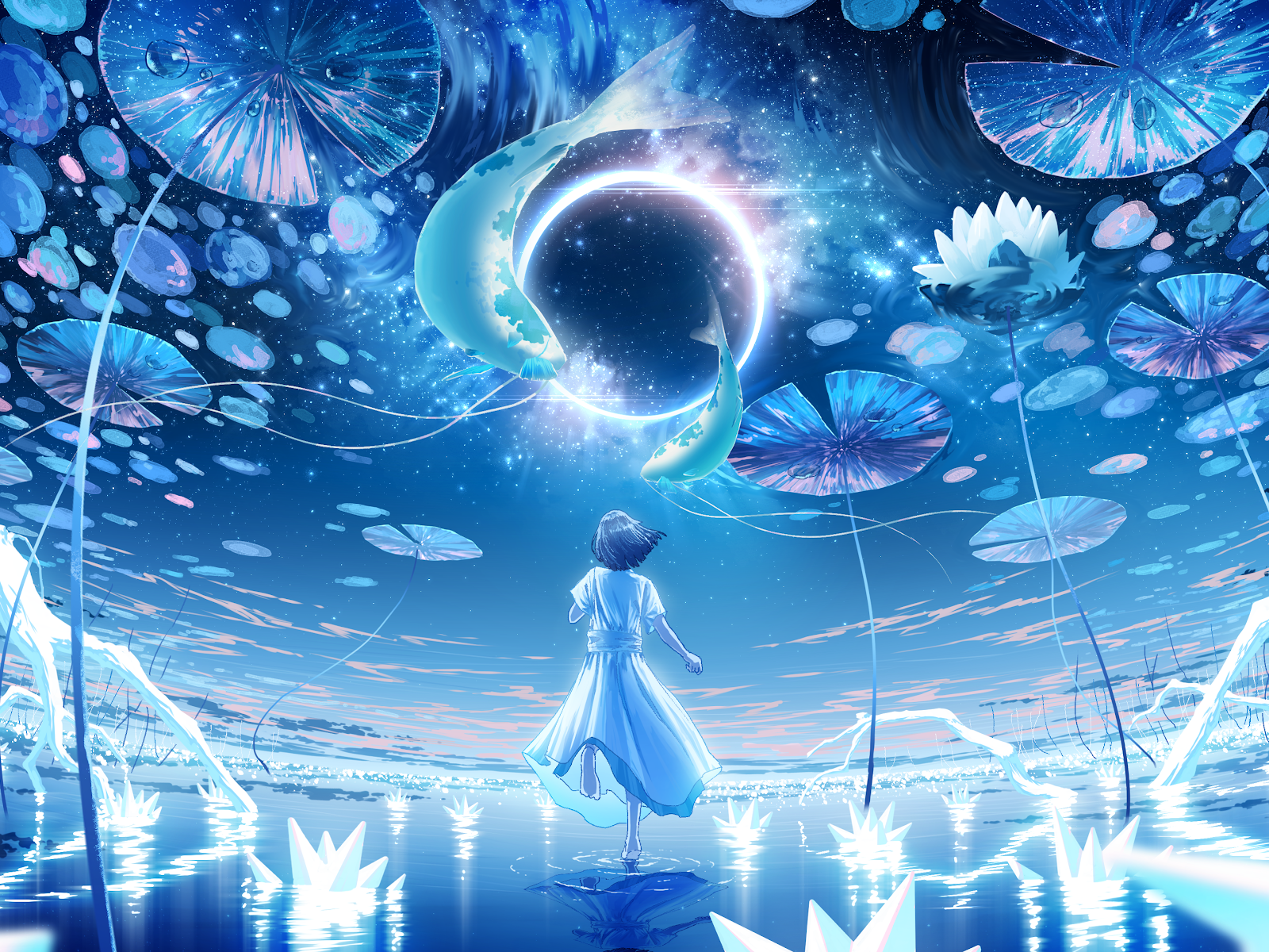 Fantasy Art, Fish Illustration, Water Lilies, Surreal Scene 4K Desktop Wallpaper