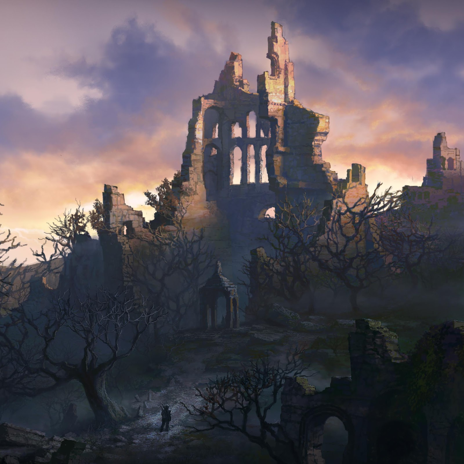 Fantasy Landscape, Castle Ruins, Digital Art, Atmospheric Scenery 4K Phone Wallpaper