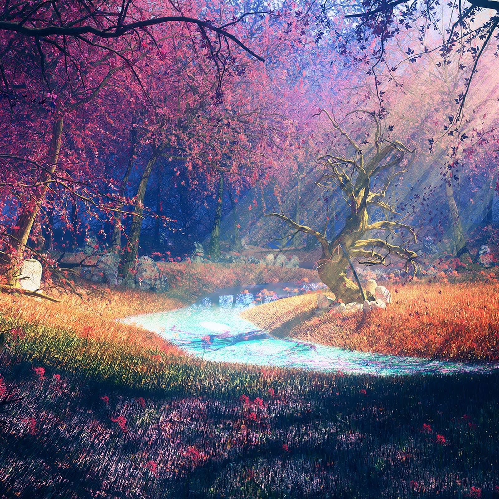 Fantasy Landscape, Enchanted Forest, Autumn Scenery, Stream Full HD Desktop and Mobile Wallpaper Background with a maximum resolution of 1920x1080 px.