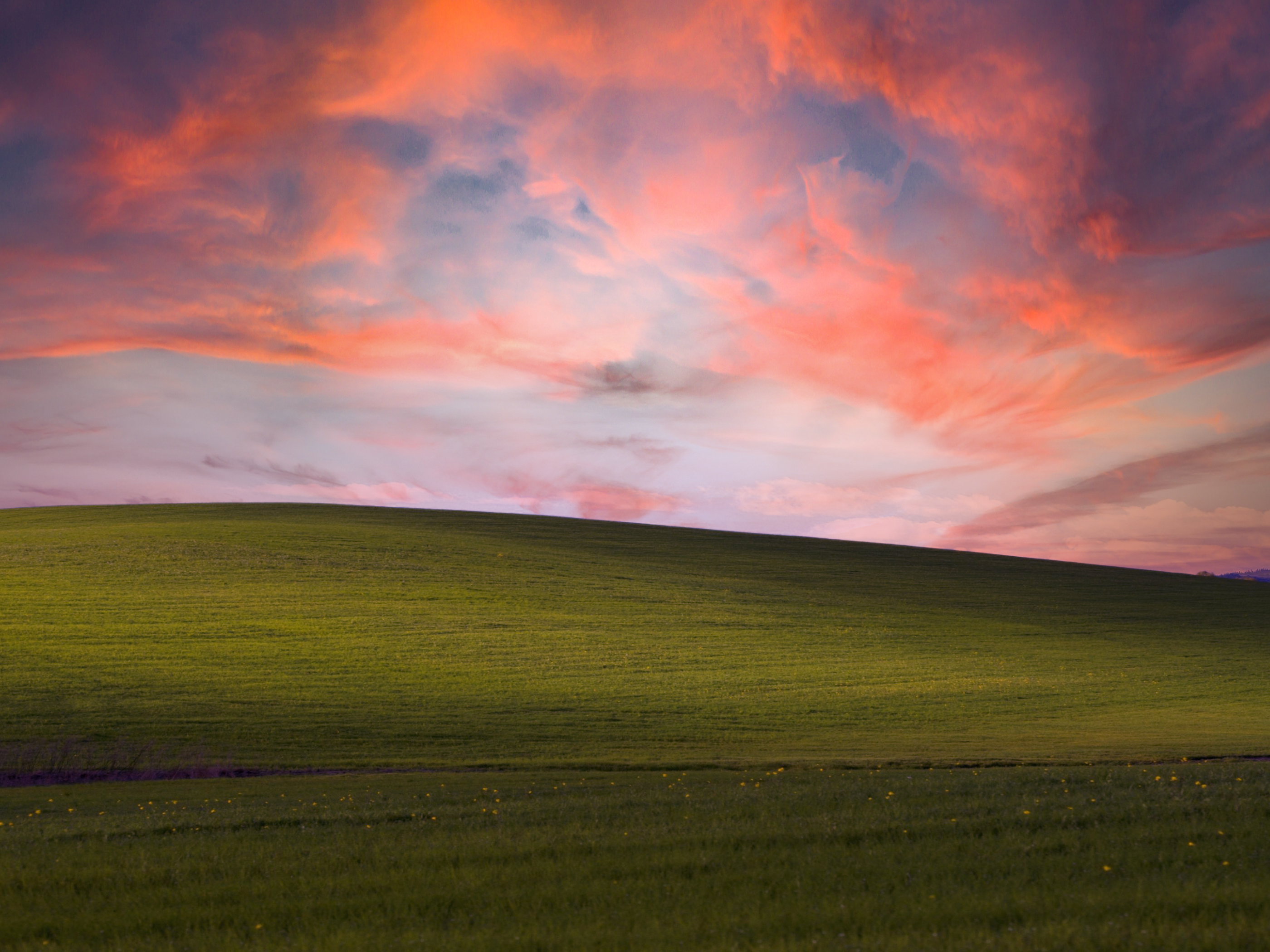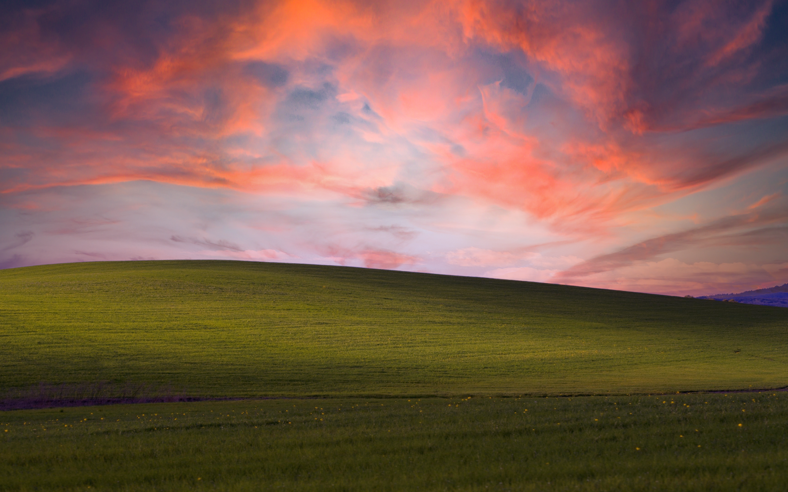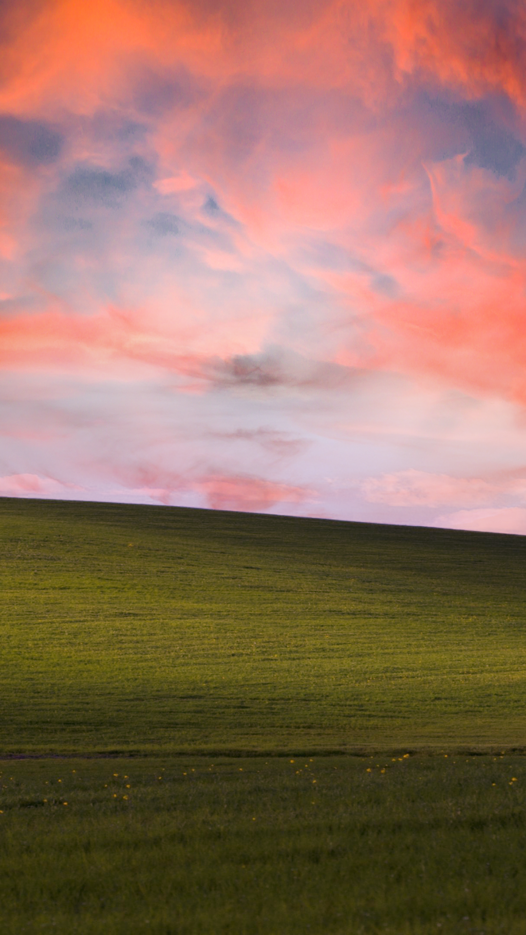 Green Field, Sunset Sky, Landscape, Meadow 4K Desktop and Mobile Wallpaper Background with a maximum resolution of 3840x2160 px.