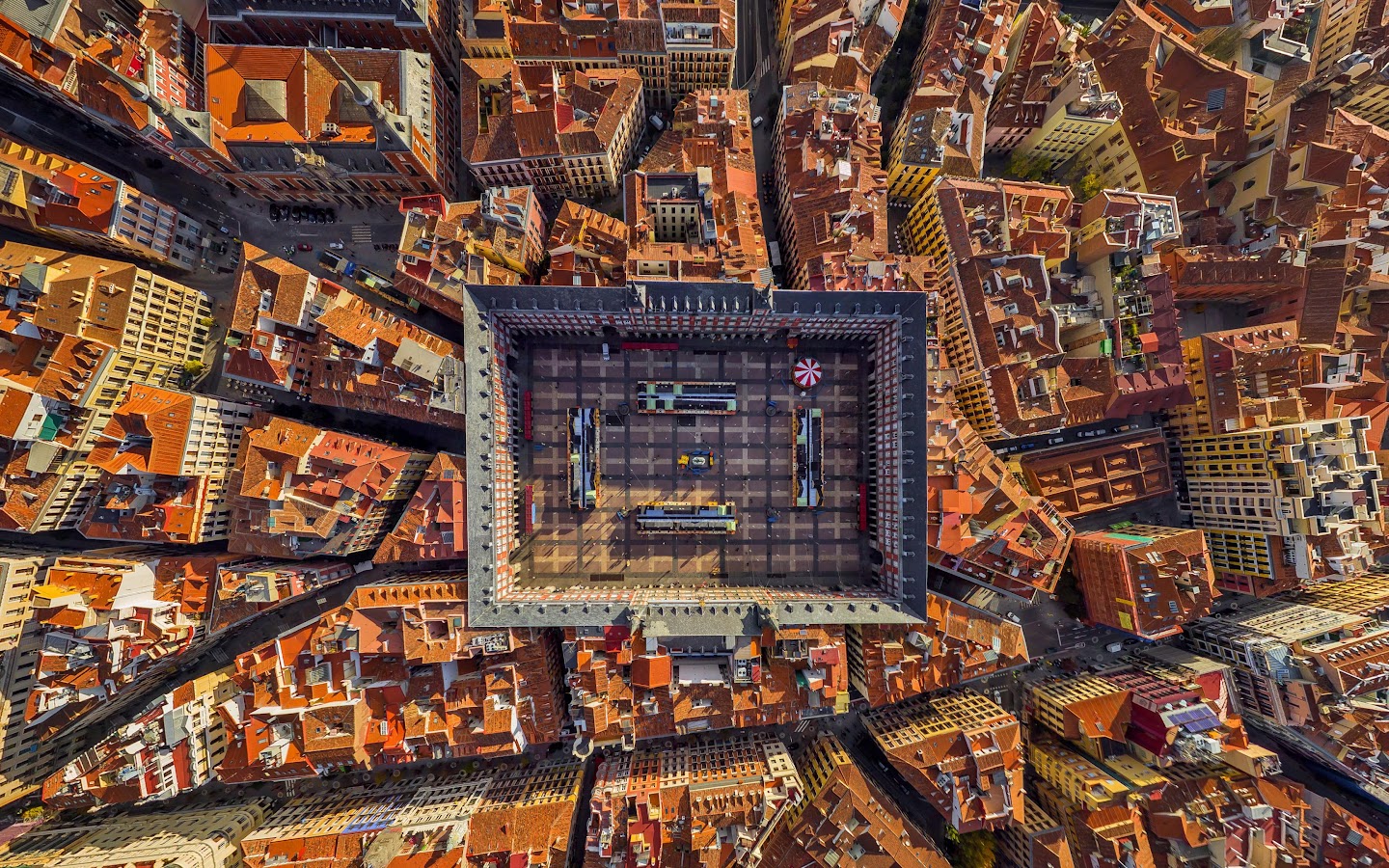 Madrid, Plaza Mayor, Aerial View, Cityscape 4K Desktop and Mobile Wallpaper Background with a maximum resolution of 3840x2160 px.