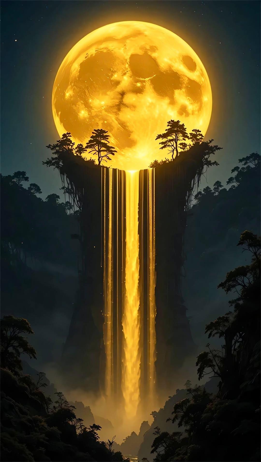 qf385 137.94 KB 1080x1906Moonlit Waterfall, Fantasy Landscape, Celestial Event, Golden Light iPhone Wallpaper Background with a maximum resolution of 1080x1906 px.
