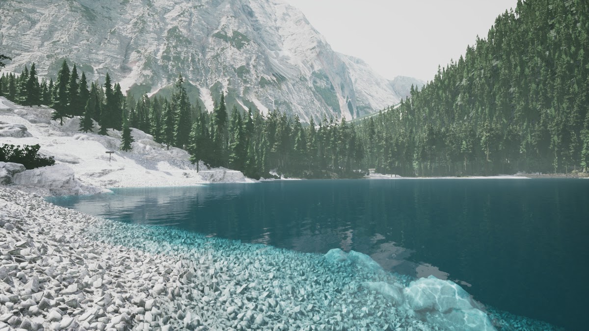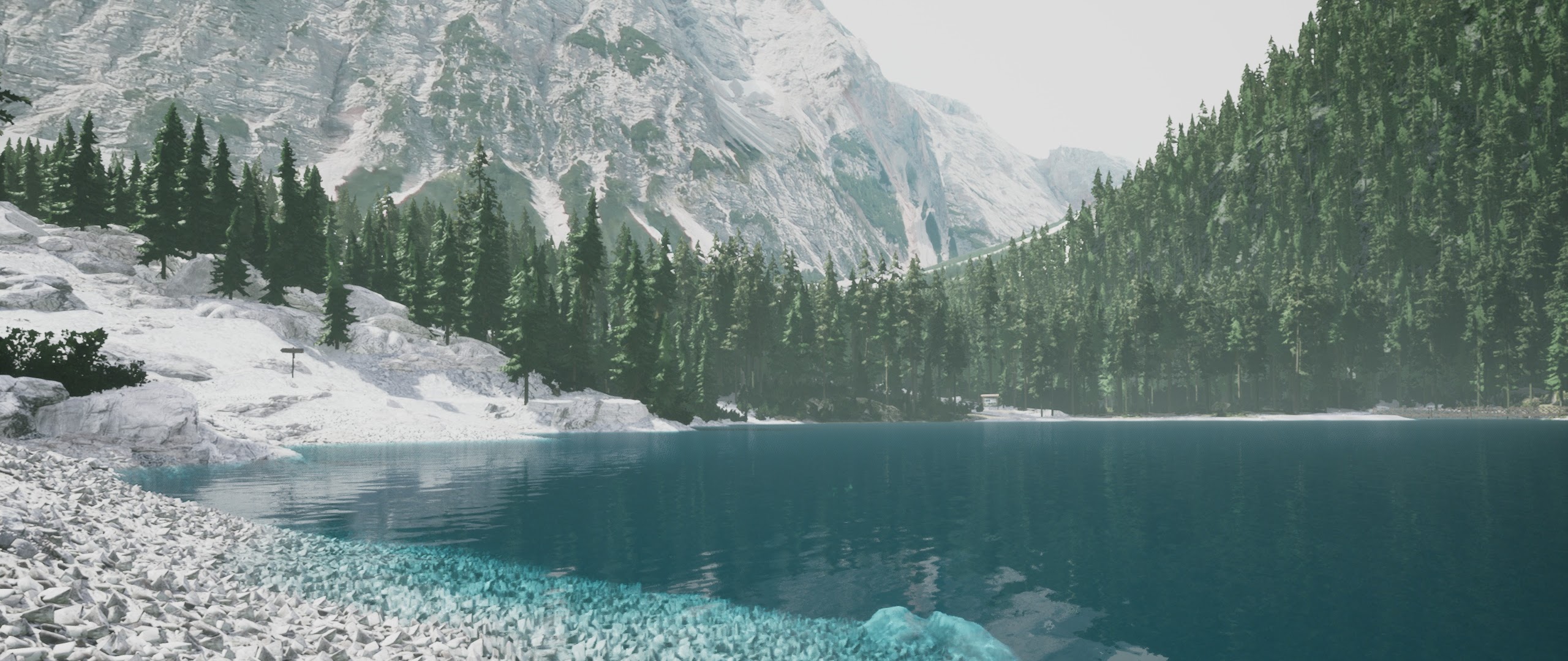 Mountain Lake, Alpine Scenery, Turquoise Water, Forest Landscape 2K Desktop Wallpaper