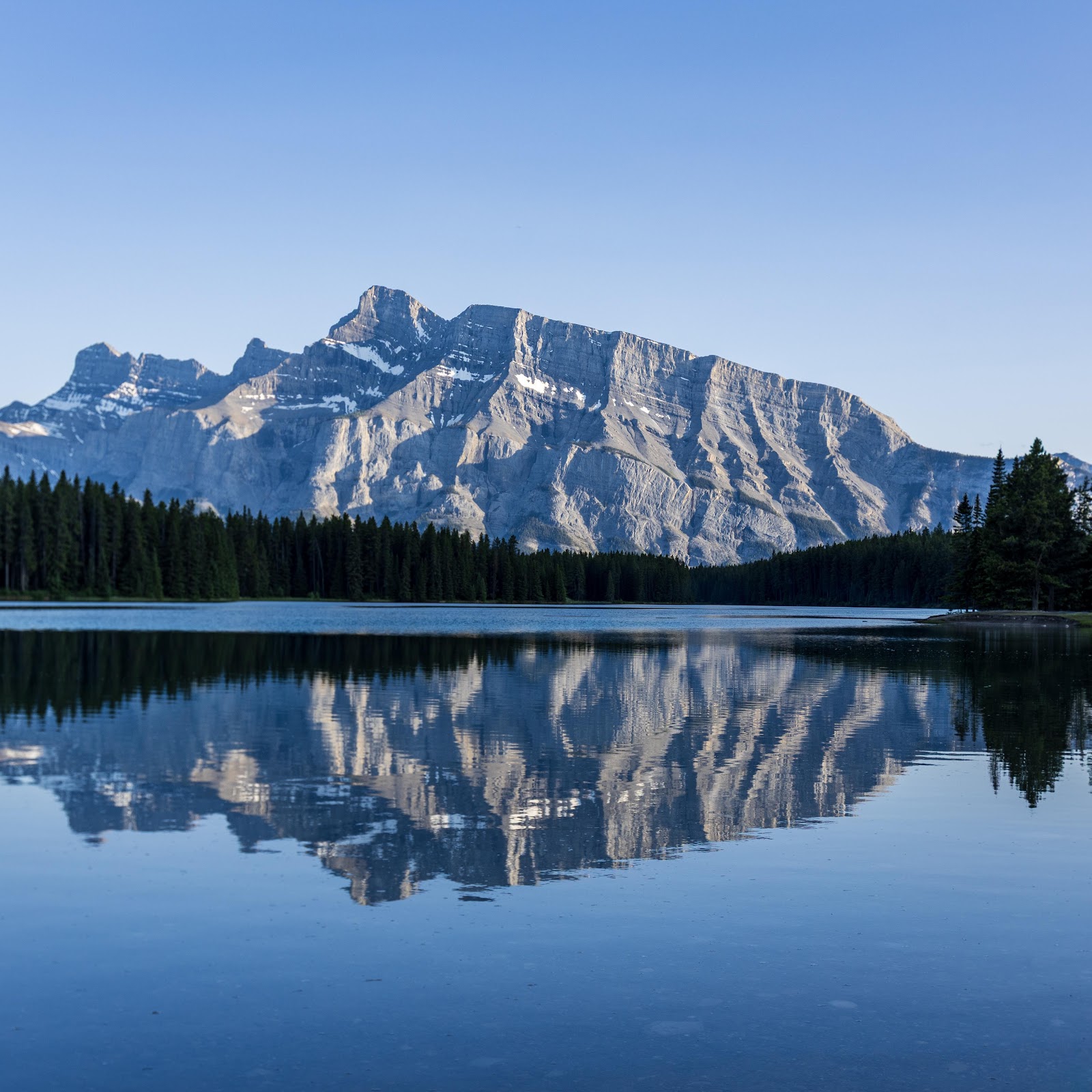 Mountain Lake, Banff, Reflection, Alberta 5K Desktop and Mobile Wallpaper Background with a maximum resolution of 6148x4099 px.
