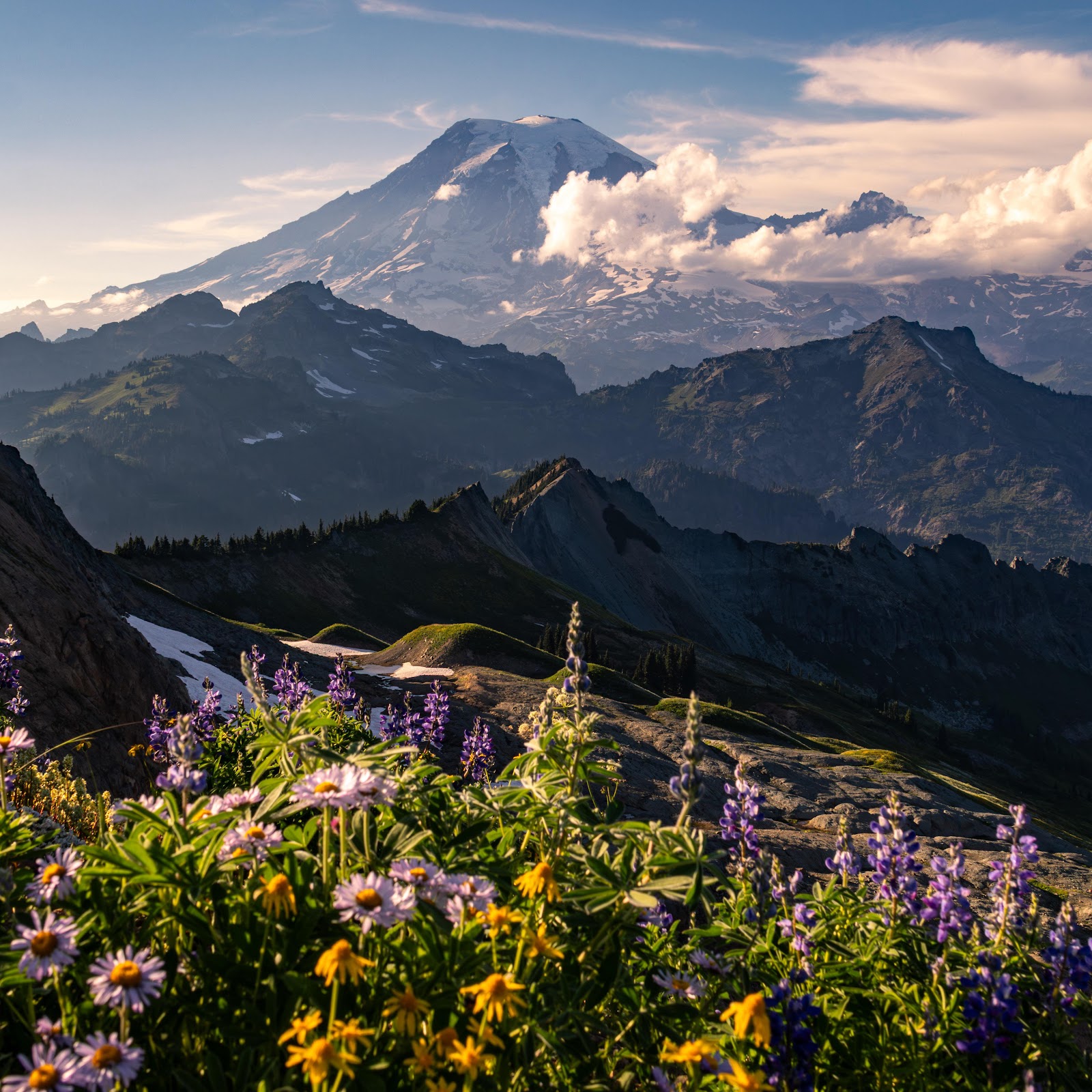 Mountain Landscape, Mount Rainier, Wildflowers, Scenic View 5K Desktop Wallpaper