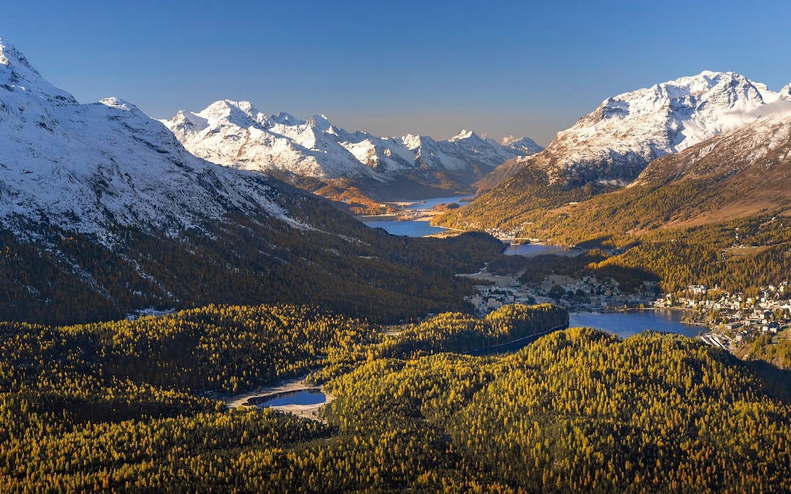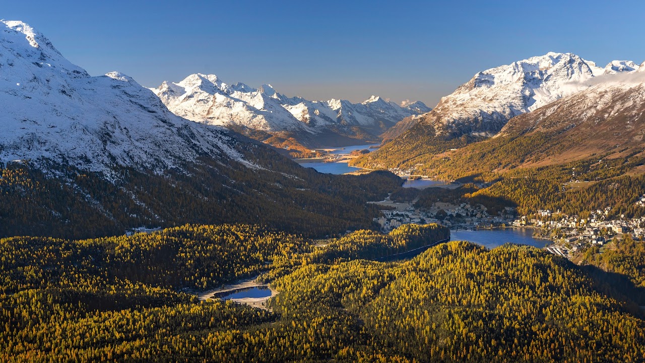 Mountain Landscape, St Moritz, Swiss Alps, Lake Scene Full HD Desktop and Mobile Wallpaper Background with a maximum resolution of 2048x1153 px.