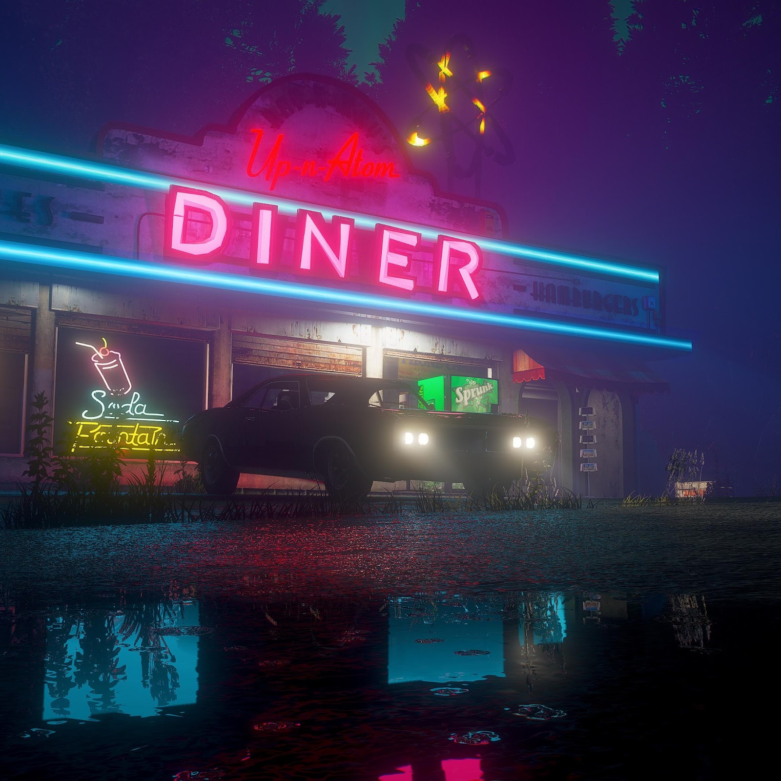 Neon Diner, Night Scene, Retro, American Roadside 4K Desktop and Mobile Wallpaper Background with a maximum resolution of 3840x2160 px.