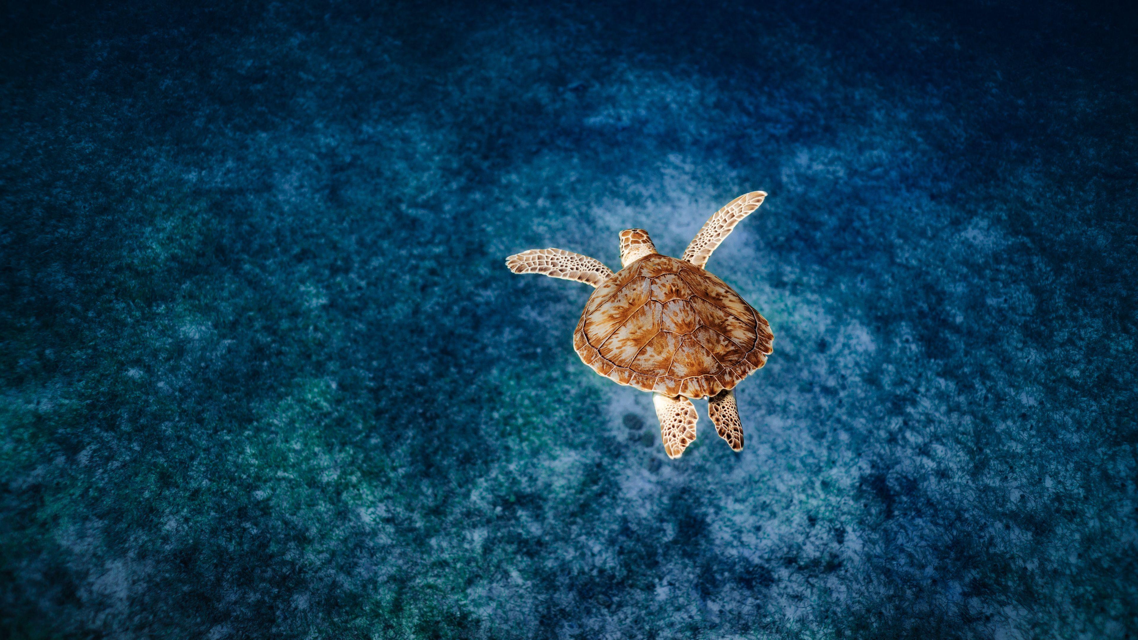Sea Turtle, Marine Life, Ocean, Underwater 4K Desktop and Mobile Wallpaper Background with a maximum resolution of 3840x2160 px.