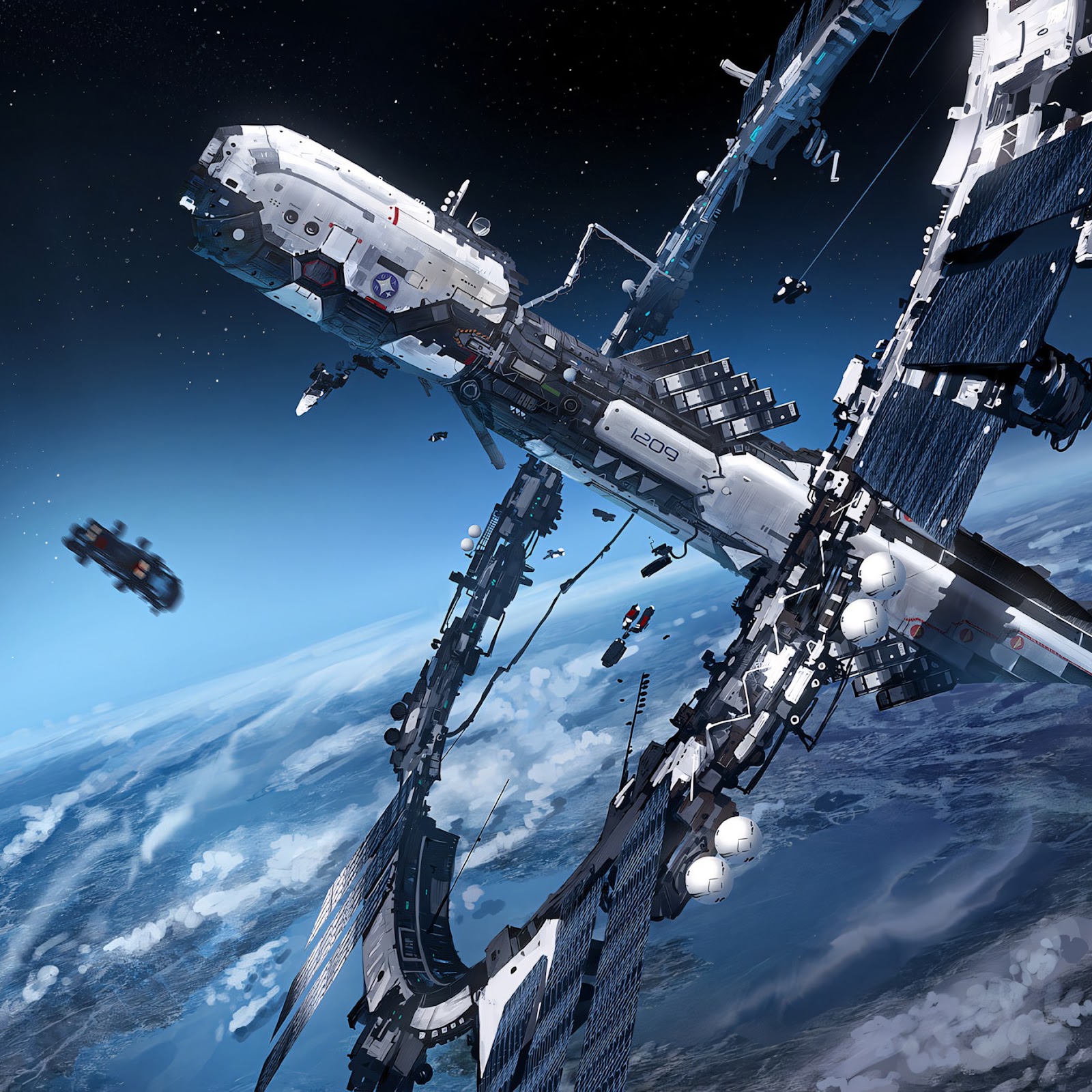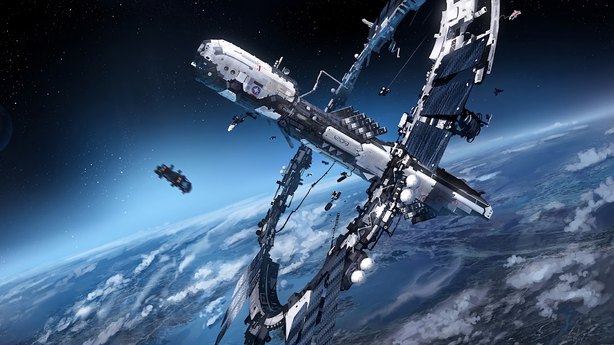 Space Station, Sci-Fi, Spaceship, Earth Orbit 2K Wallpaper Background (3296x1854)