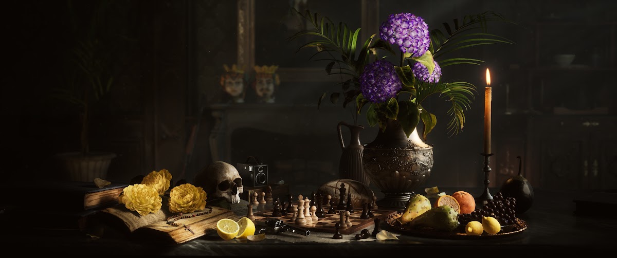 Still Life, Dark Art, Candlelight, Chess 2K Ultrawide Desktop and Mobile Wallpaper Background with a maximum resolution of 3440x1440 px.