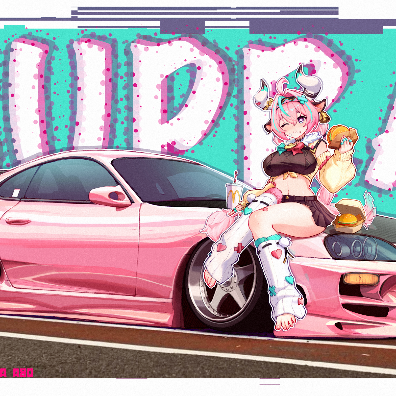 Toyota Supra, Jdm Car, Anime Girl, Car Illustration 4K Desktop Wallpaper