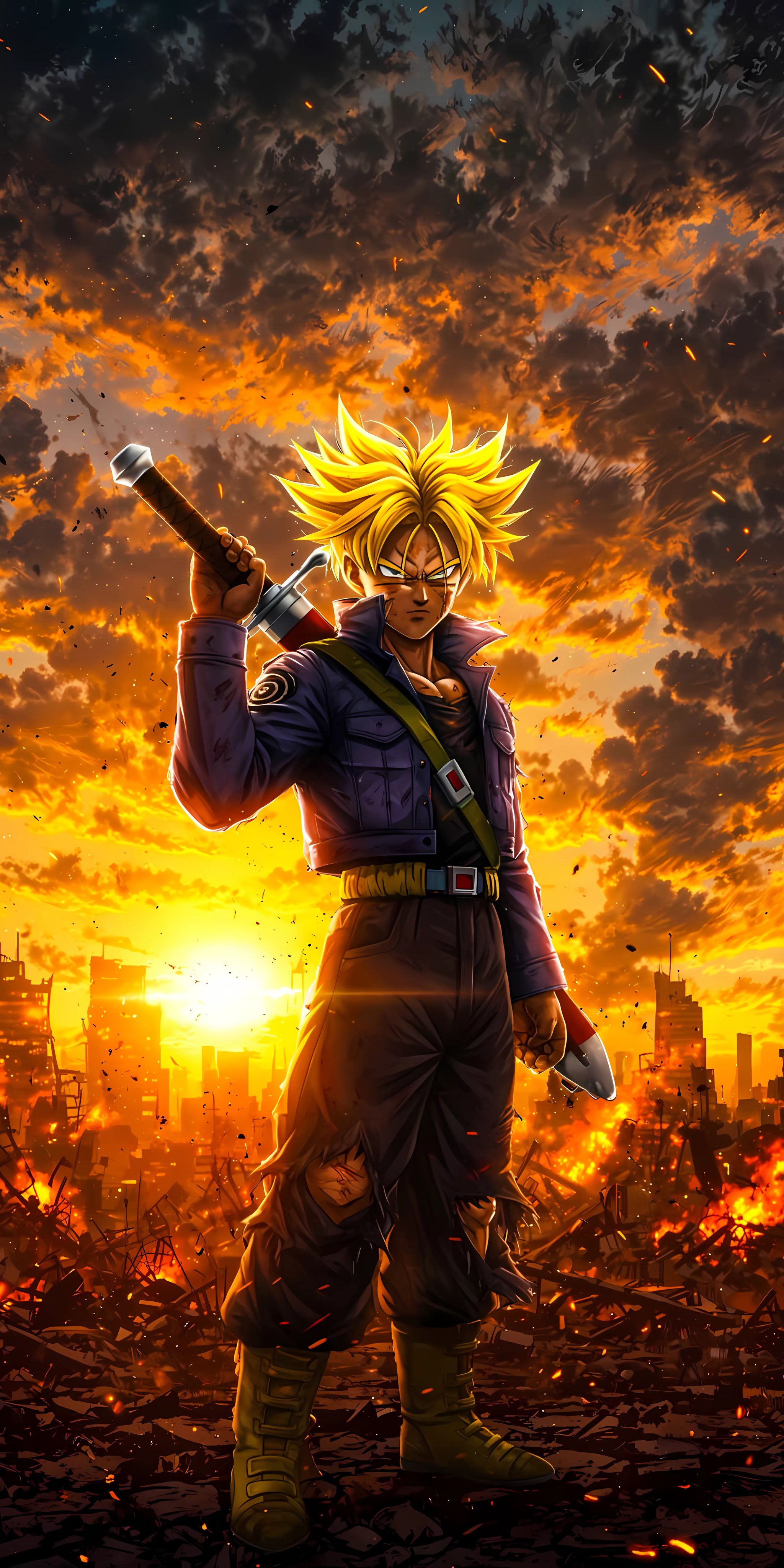 Trunks, Dragon Ball, Anime, Destruction 2K iPhone Wallpaper Background (2048x4096)