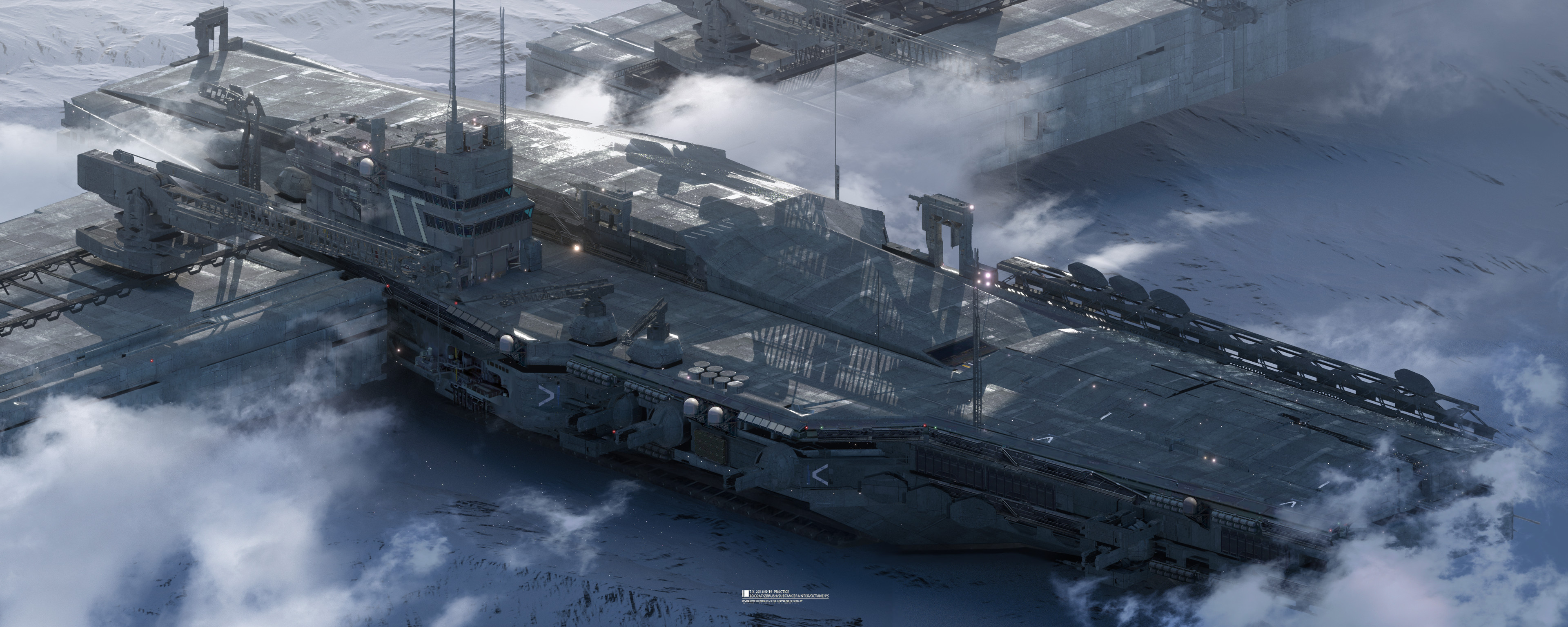 Aircraft Carrier, Sci-Fi, Futuristic, Naval 2K Desktop and Mobile Wallpaper Background with a maximum resolution of 3840x1536 px.