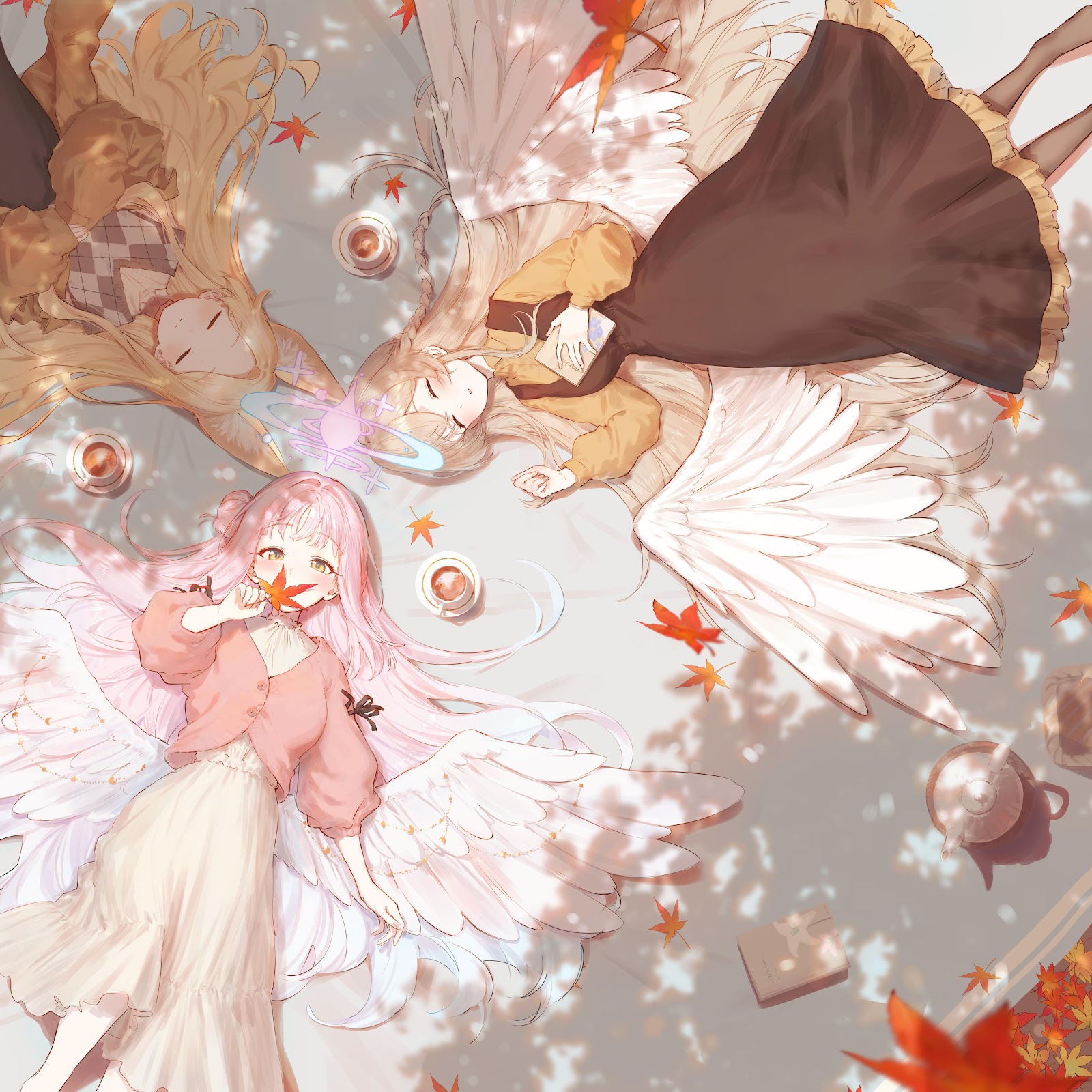 Angel Art, Anime Girls, Autumnal, Illustration 5K Desktop and Mobile Wallpaper Background with a maximum resolution of 7082x5016 px.