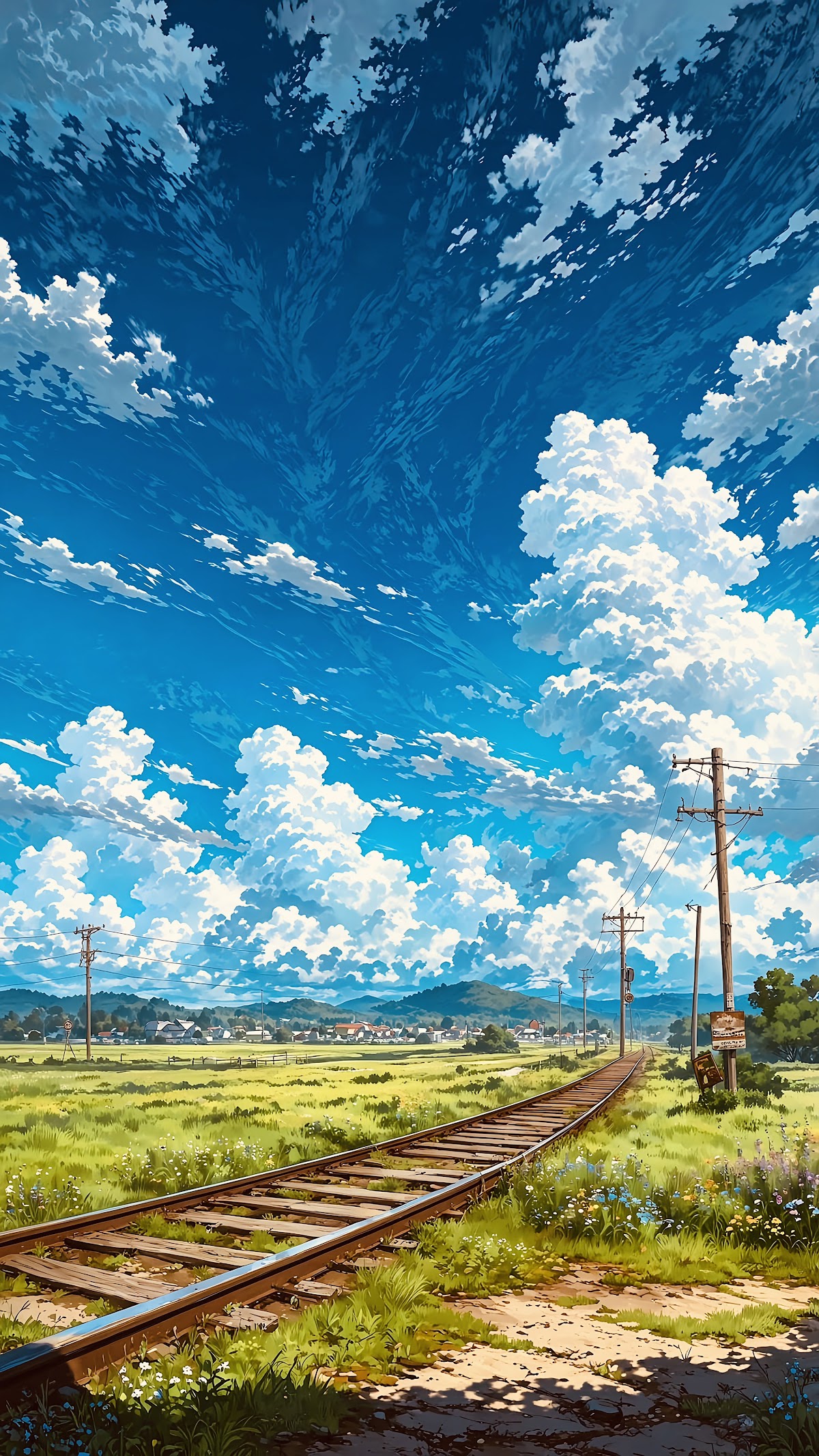 Anime Landscape, Train Tracks, Blue Sky, Cloudscape 4K iPhone Wallpaper Anime Landscape, Train Tracks, Blue Sky, Cloudscape 4K iPhone Wallpaper Background with a maximum resolution of 2304x4096 px. tz039 1.41 MB 2304x4096 Download original File Size: Dimensions: Resolution: 4K Format: Mobile ID: Anime Landscape Blue Sky Cloudscape Train Tracks