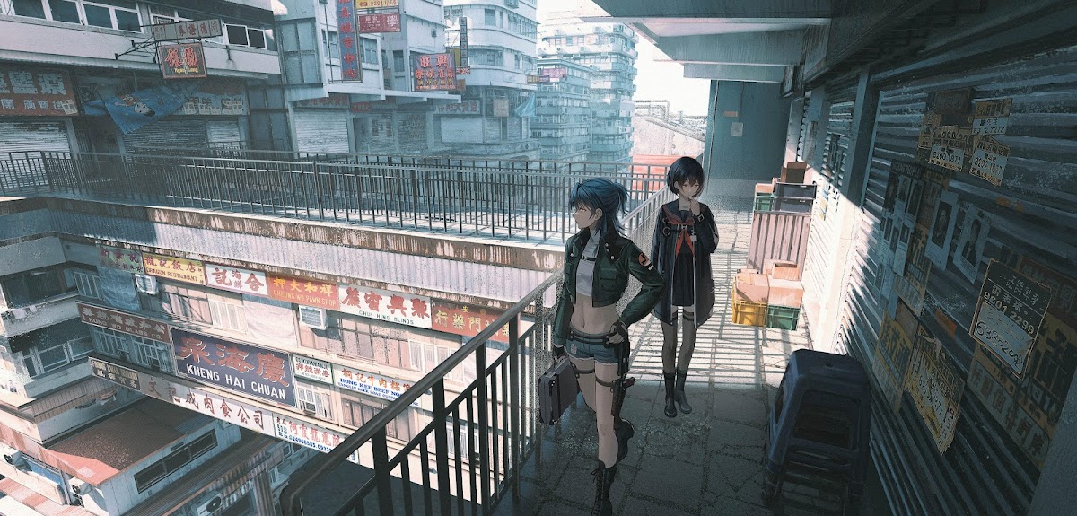 Anime, Urban, Cityscape, Character 4K Desktop and Mobile Wallpaper Background with a maximum resolution of 6000x2878 px.