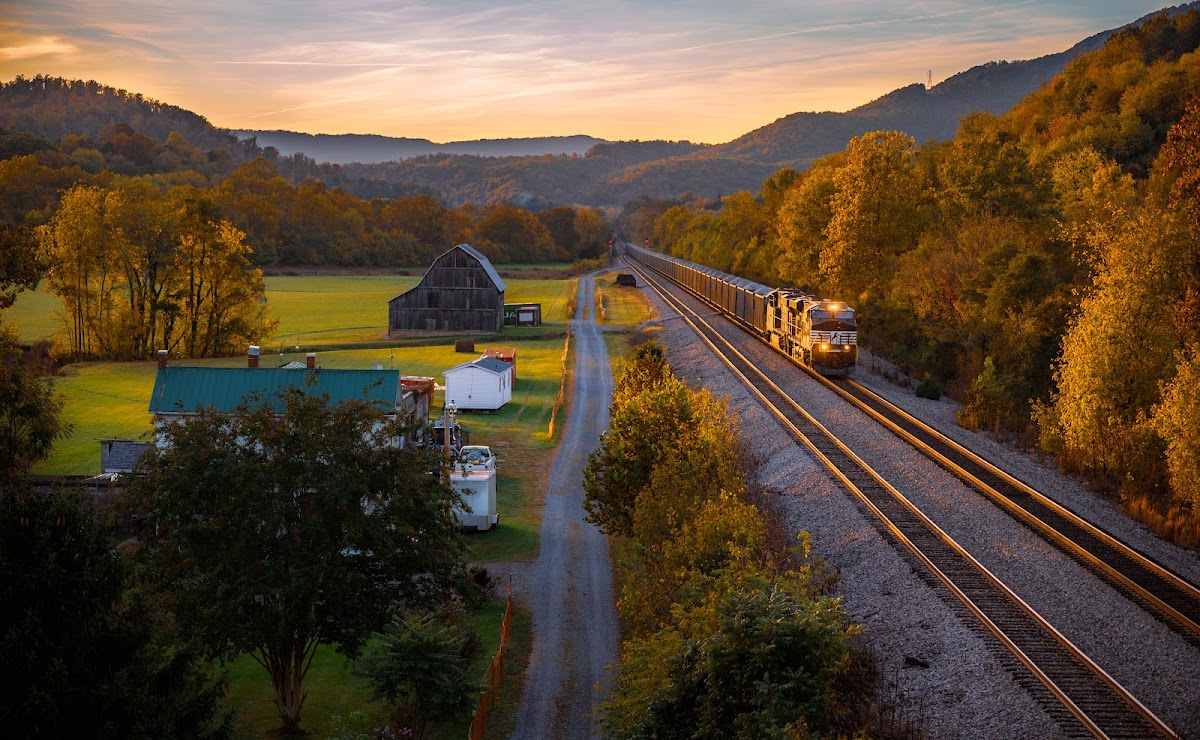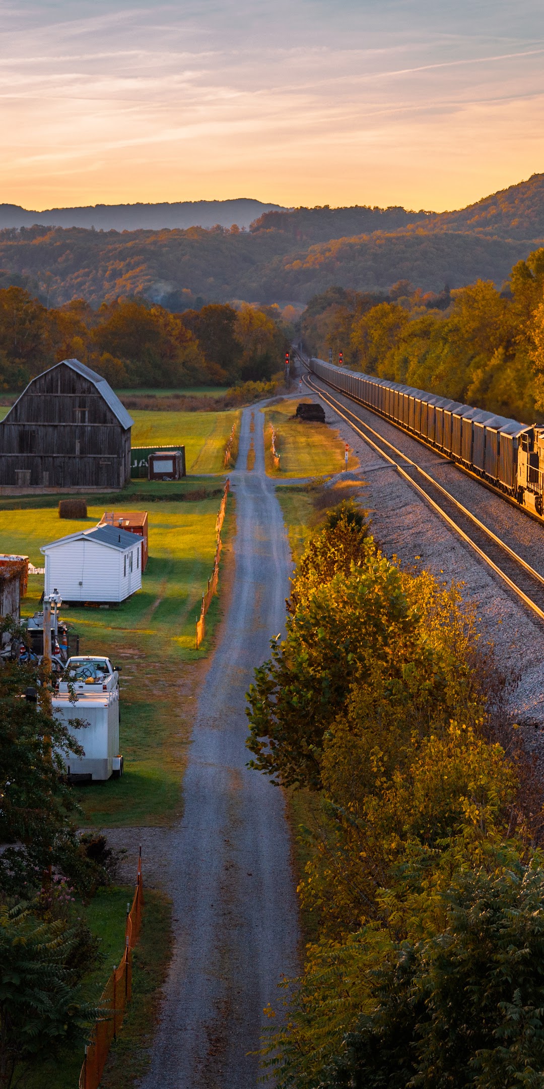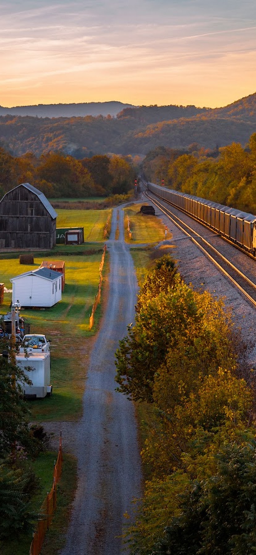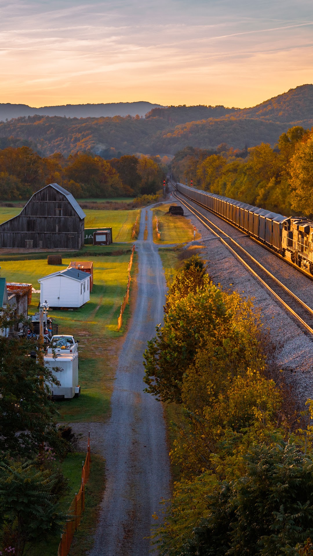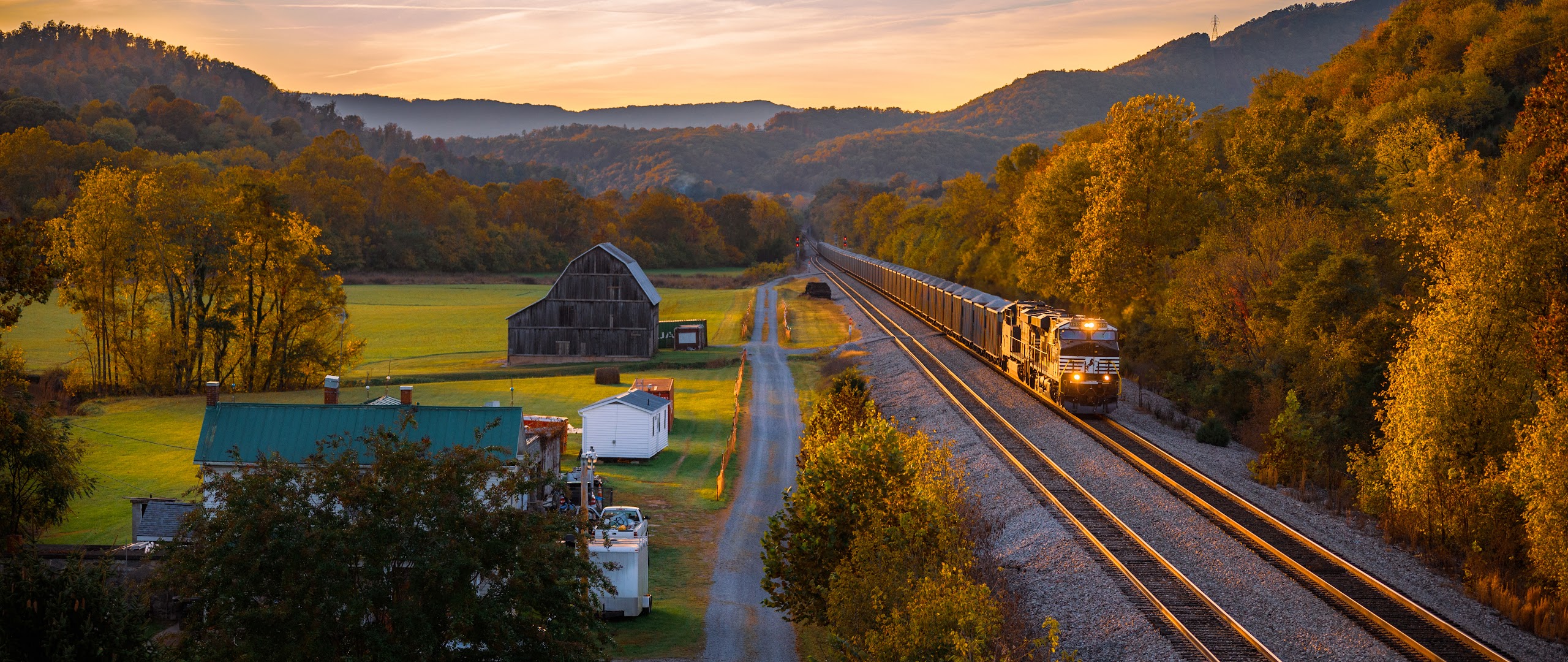 Autumn Landscape, Train, Rural Scene, Railroad Tracks 5K Desktop Wallpaper
