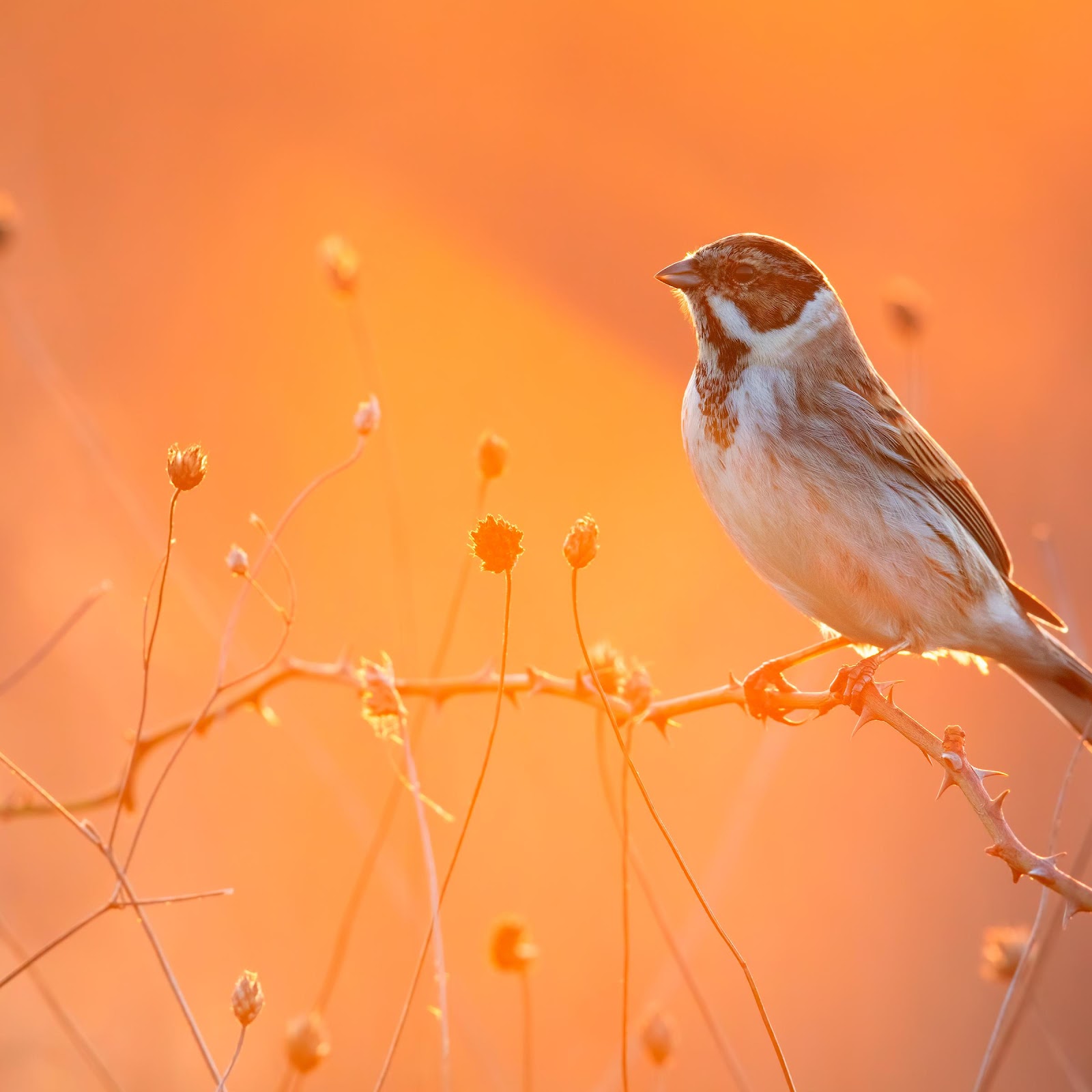 Bird Photography, Reed Bunting, Wildlife, Sunrise 4K Desktop and Mobile Wallpaper Background with a maximum resolution of 3840x2400 px.