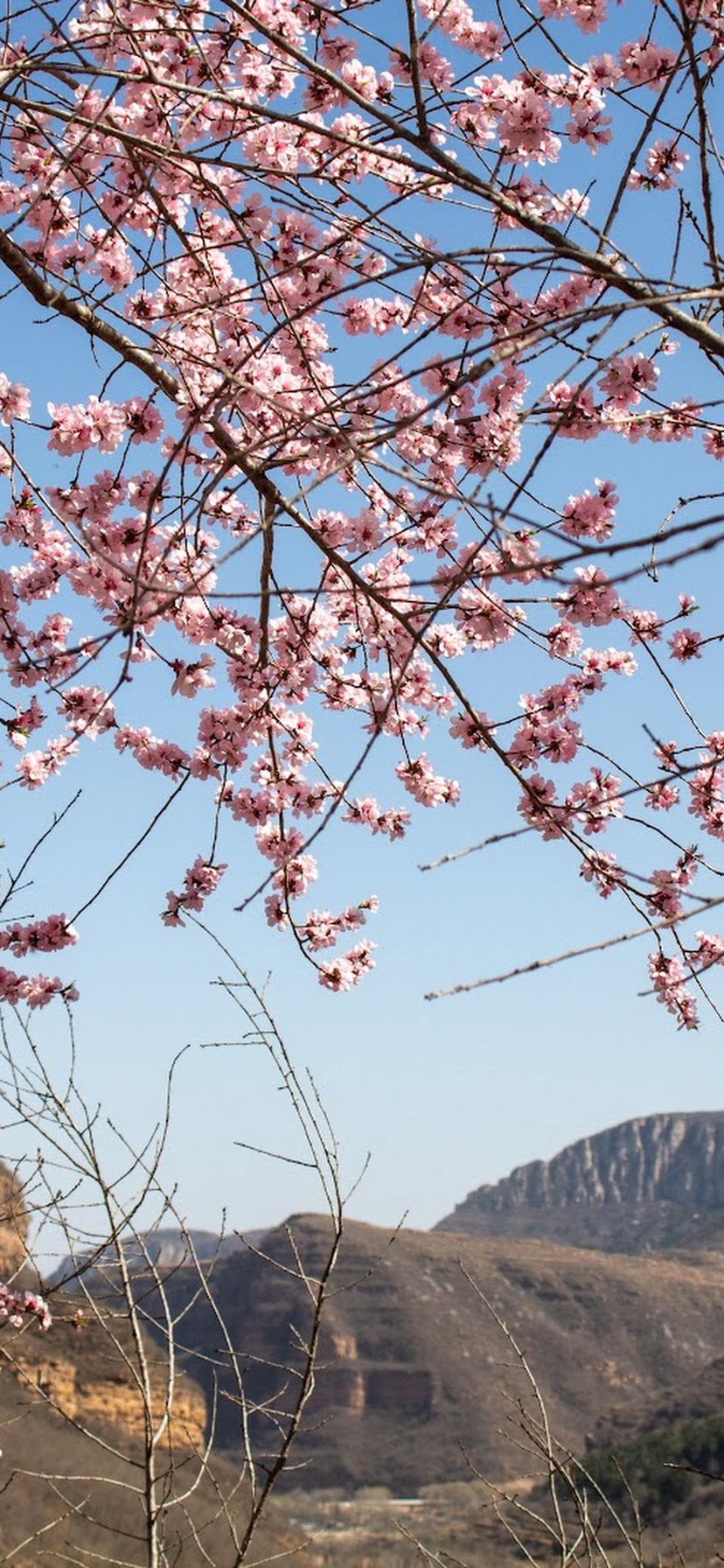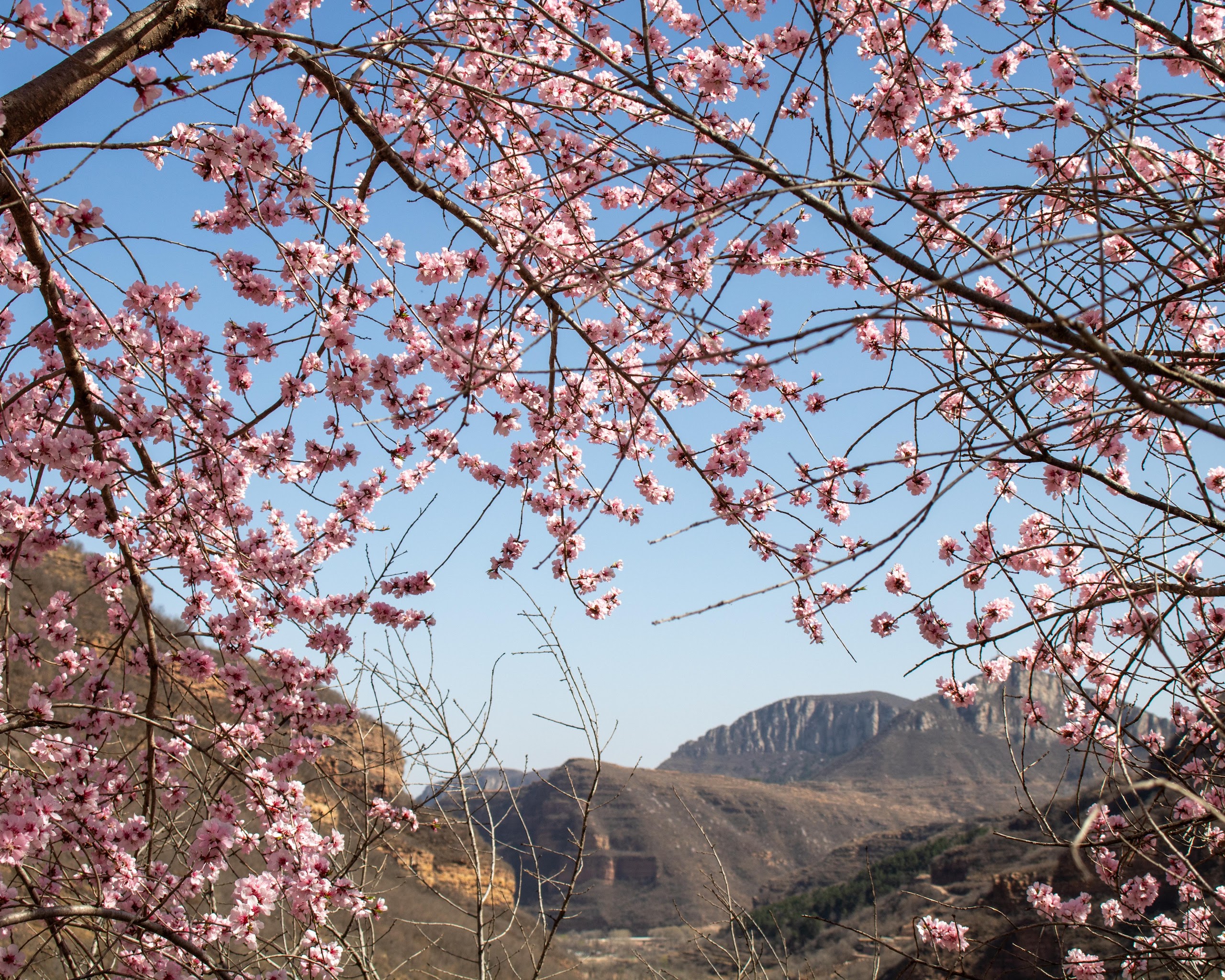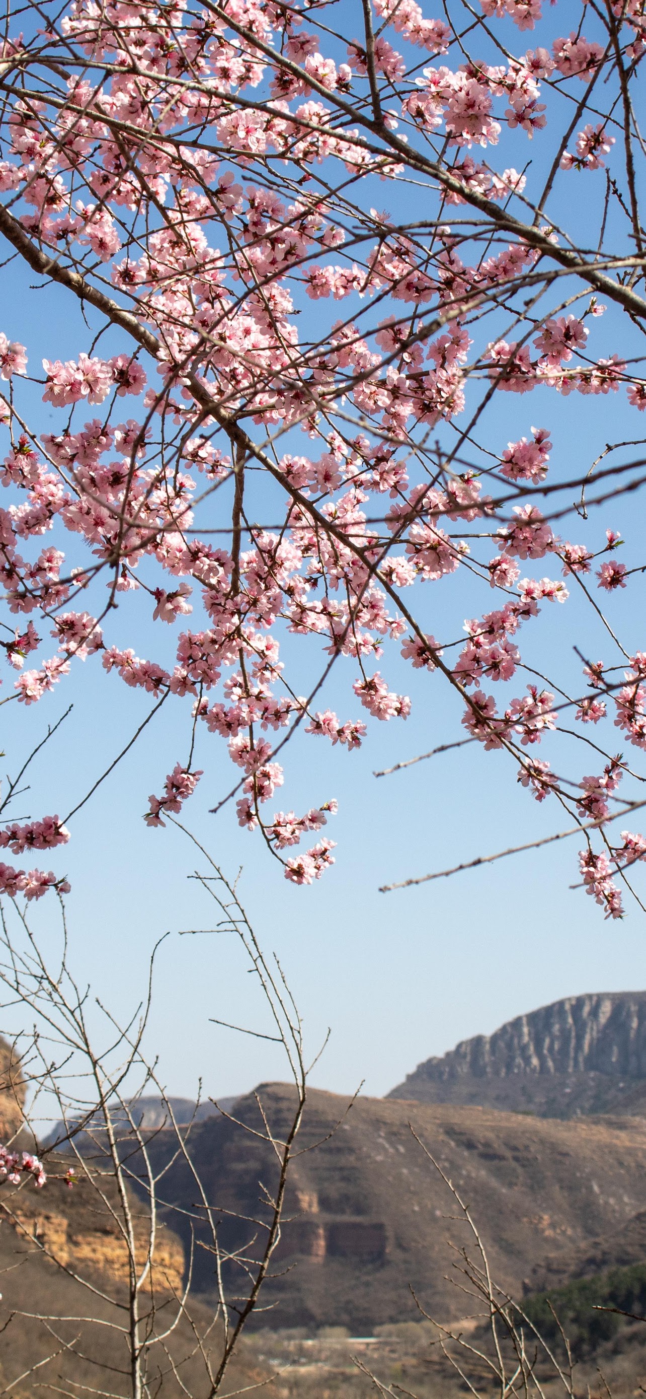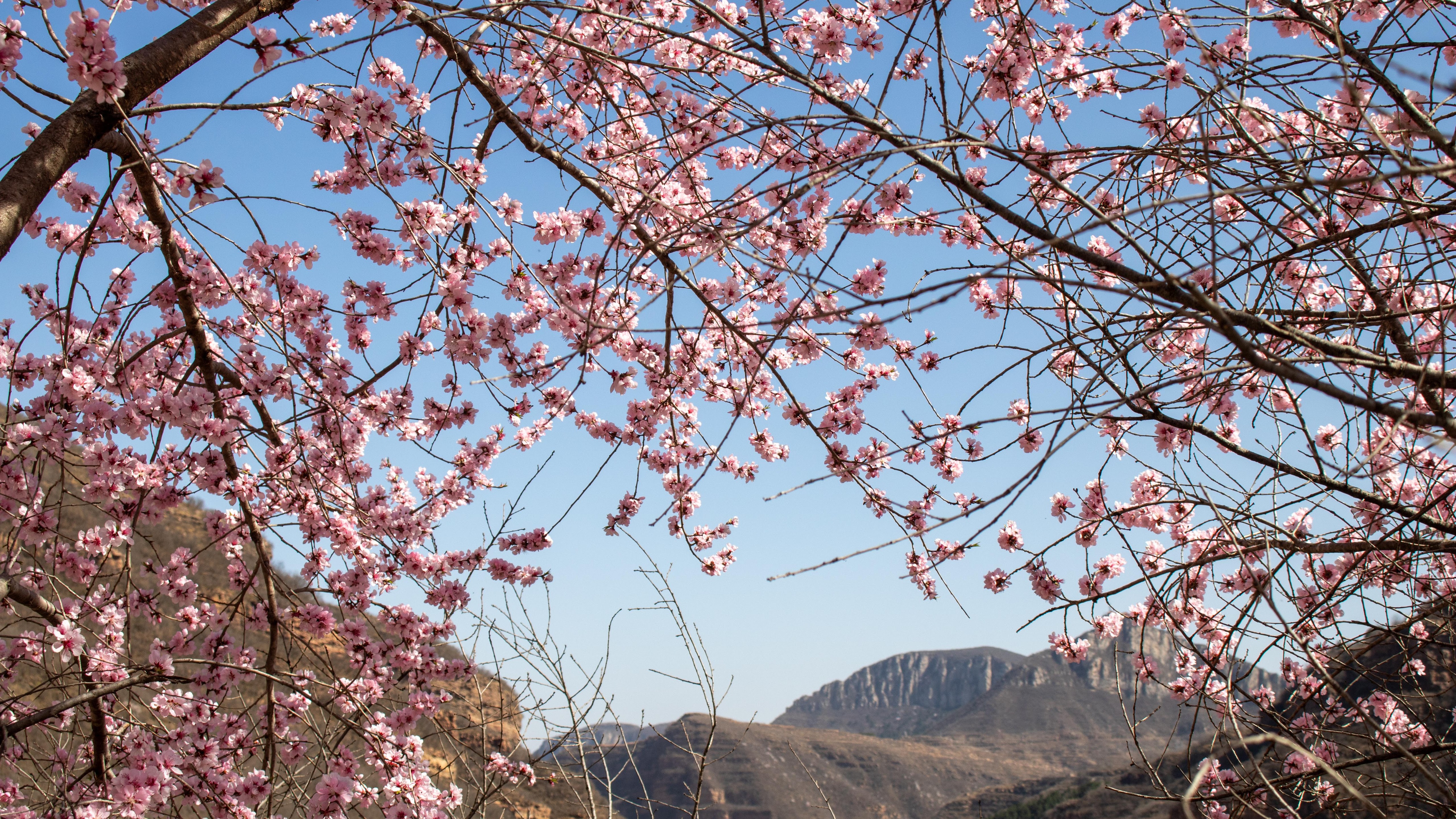 Cherry Blossom, Springtime, Mountain View, Nature 5K Desktop and Mobile Wallpaper Background with a maximum resolution of 6000x4000 px.