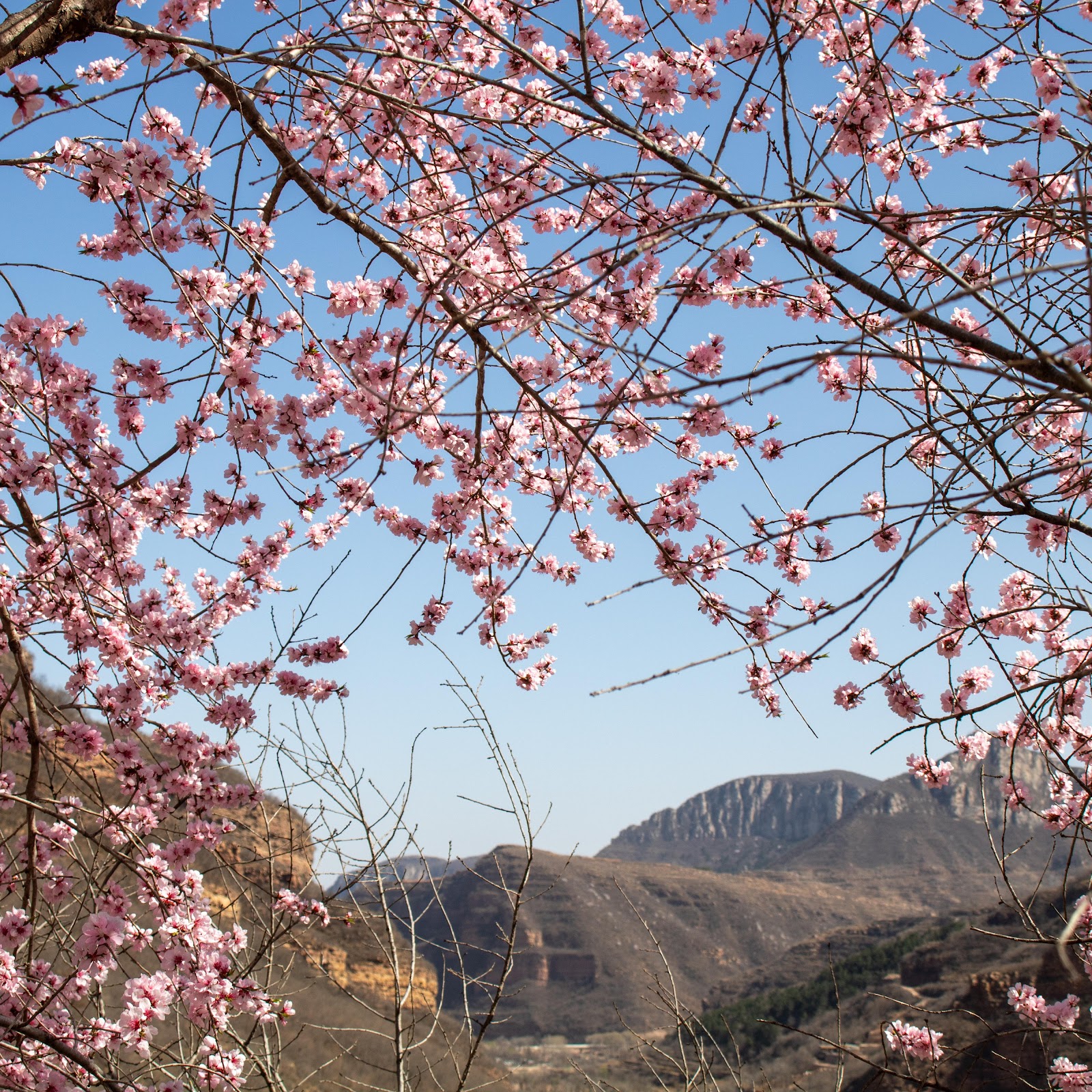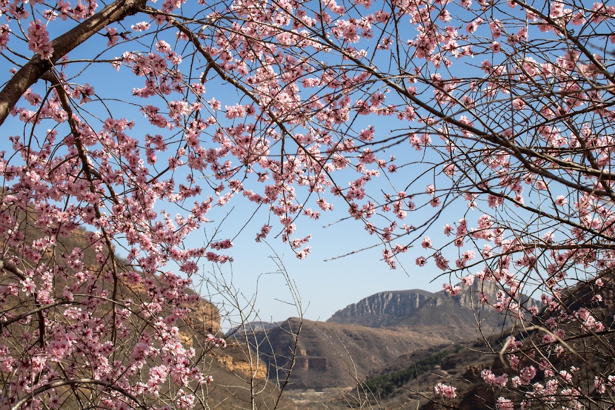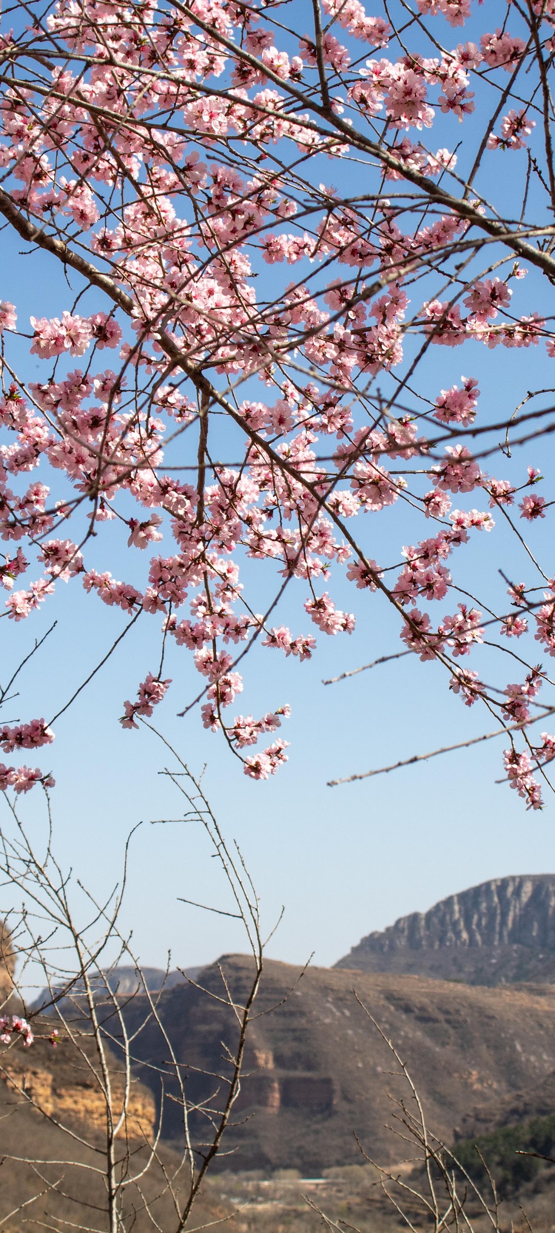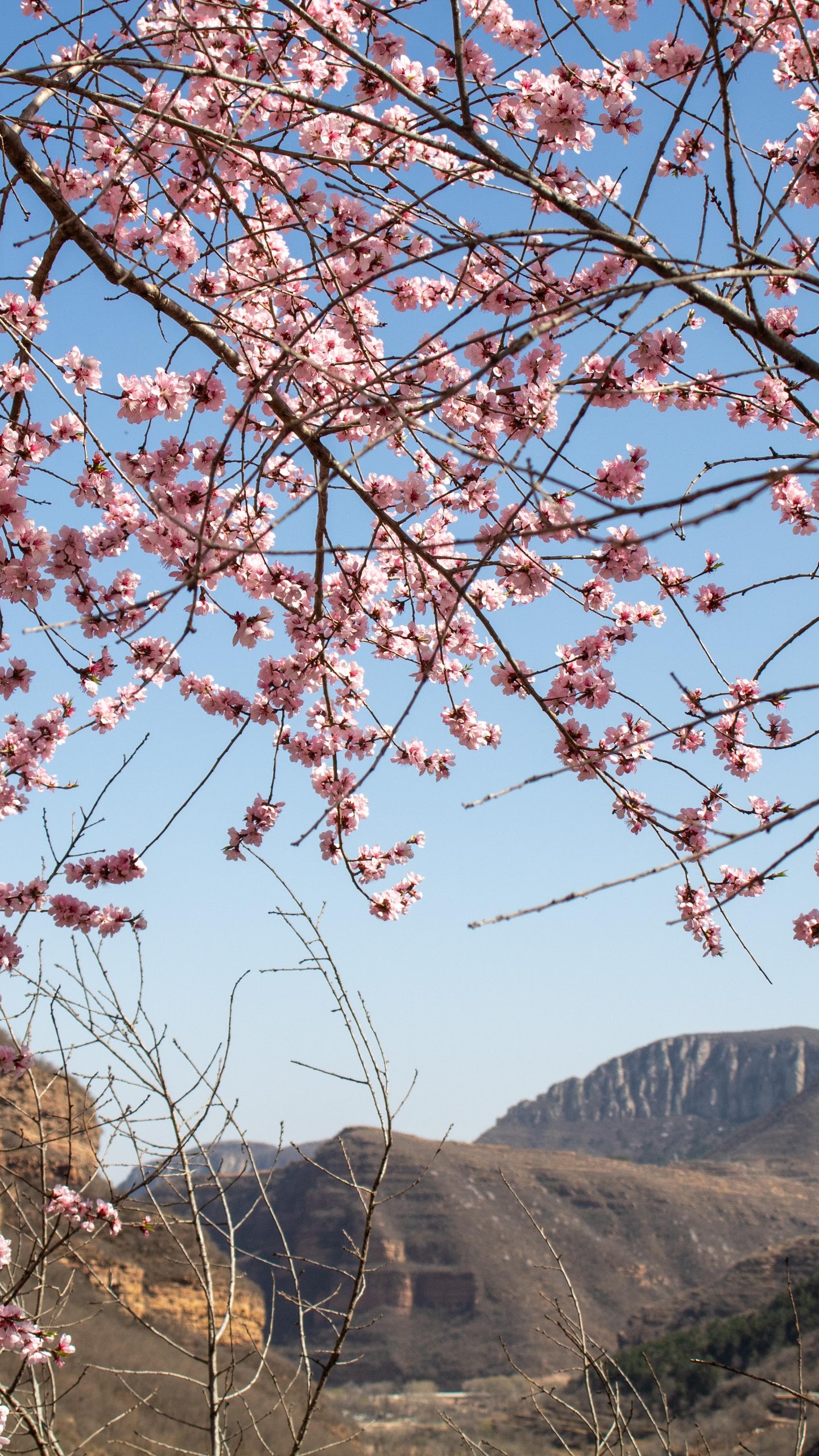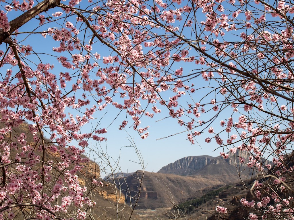 Cherry Blossom, Springtime, Mountain View, Nature 5K Desktop and Mobile Wallpaper Background with a maximum resolution of 6000x4000 px.