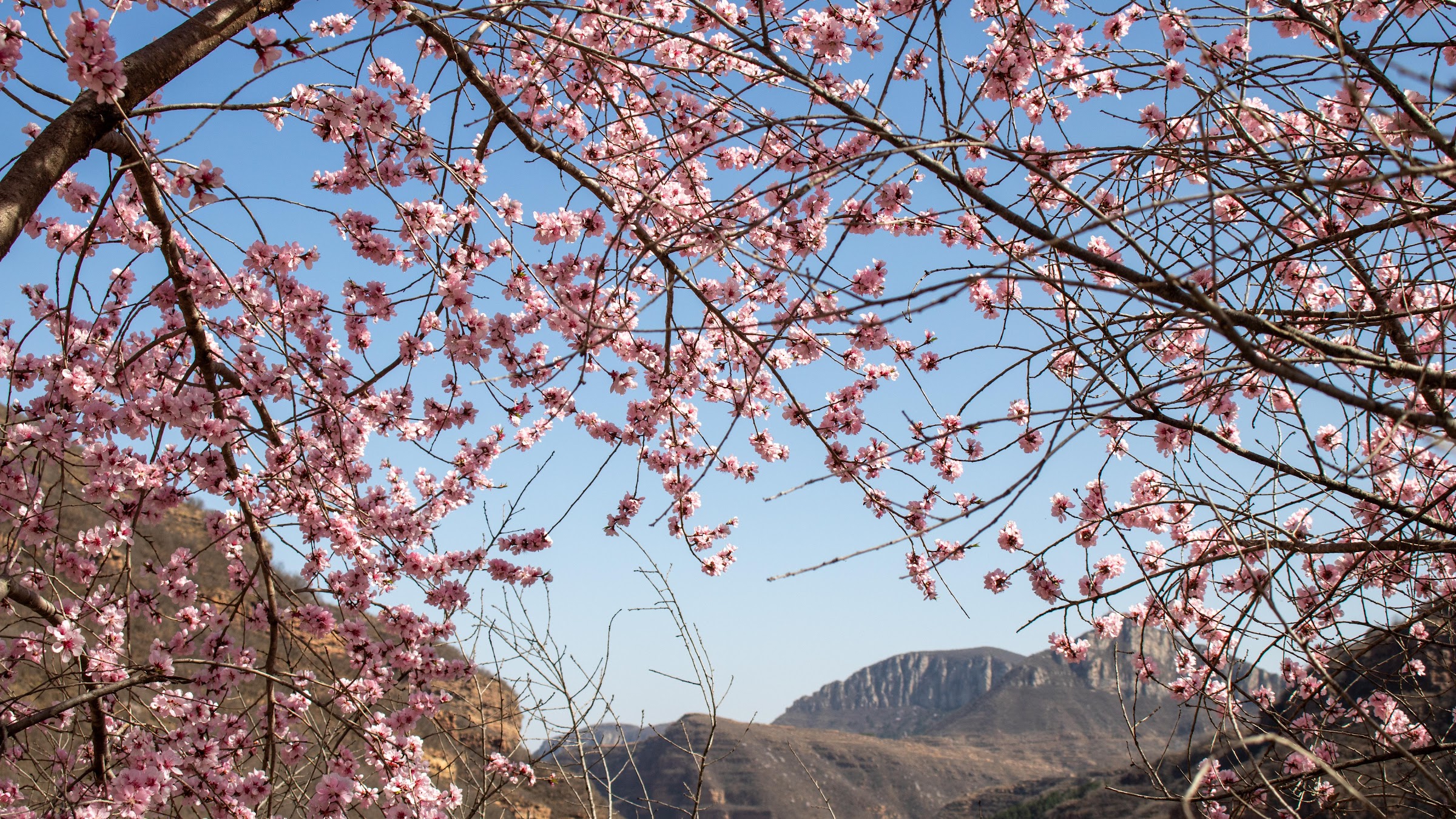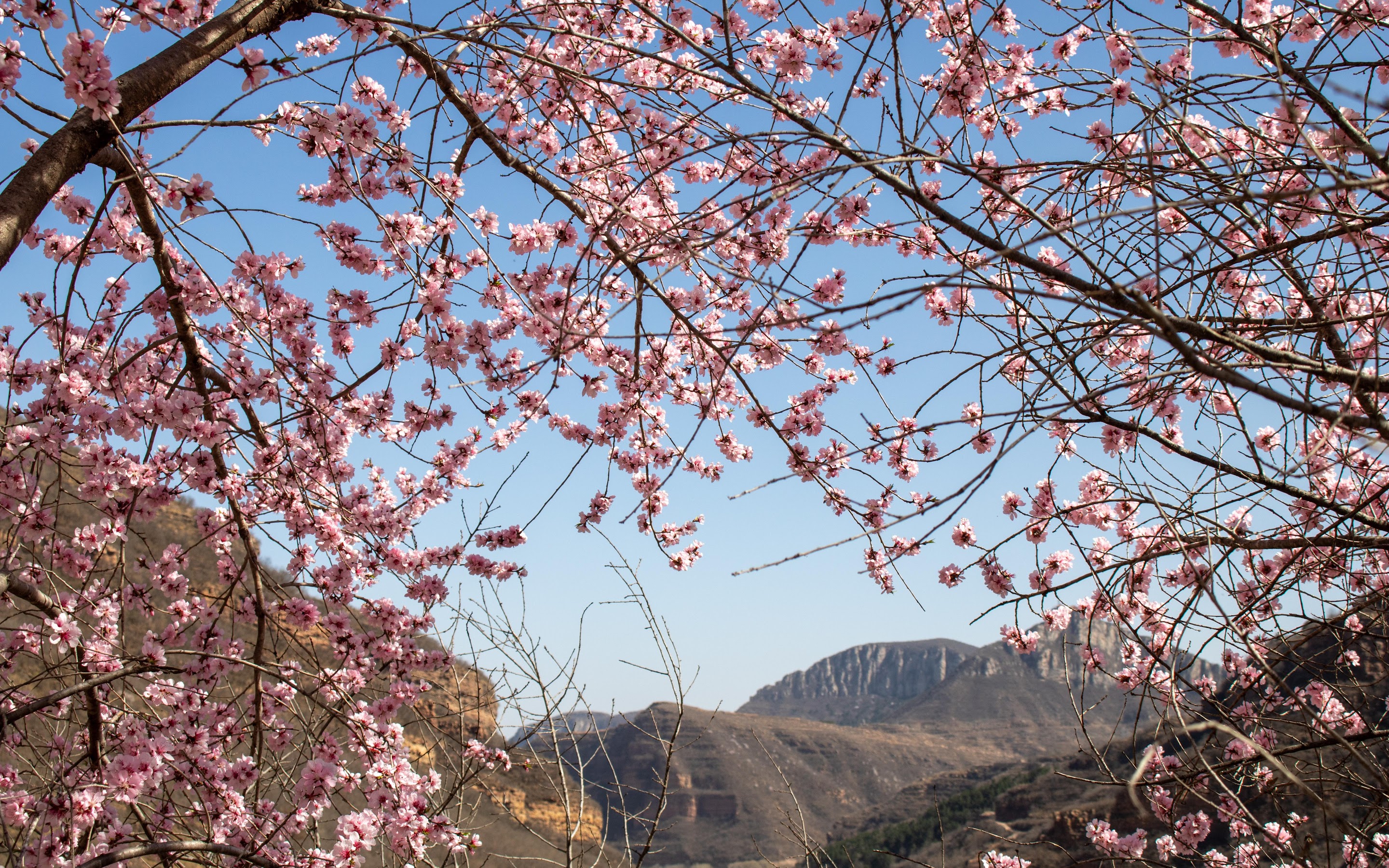 Cherry Blossom, Springtime, Mountain View, Nature 5K Desktop Wallpaper
