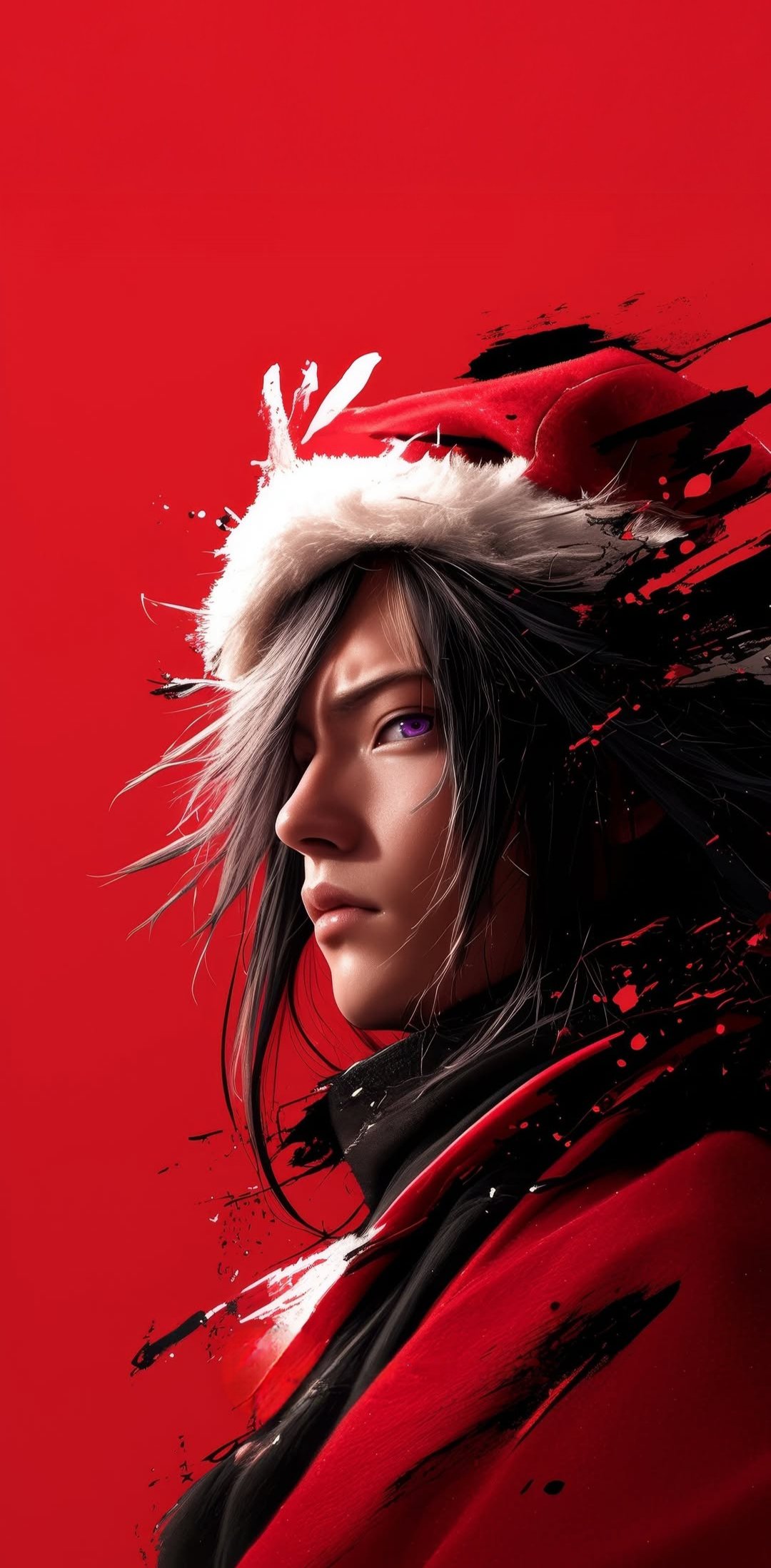 Christmas Anime, Santa Hat, Red, Portrait Full HD iPhone Phone Wallpaper