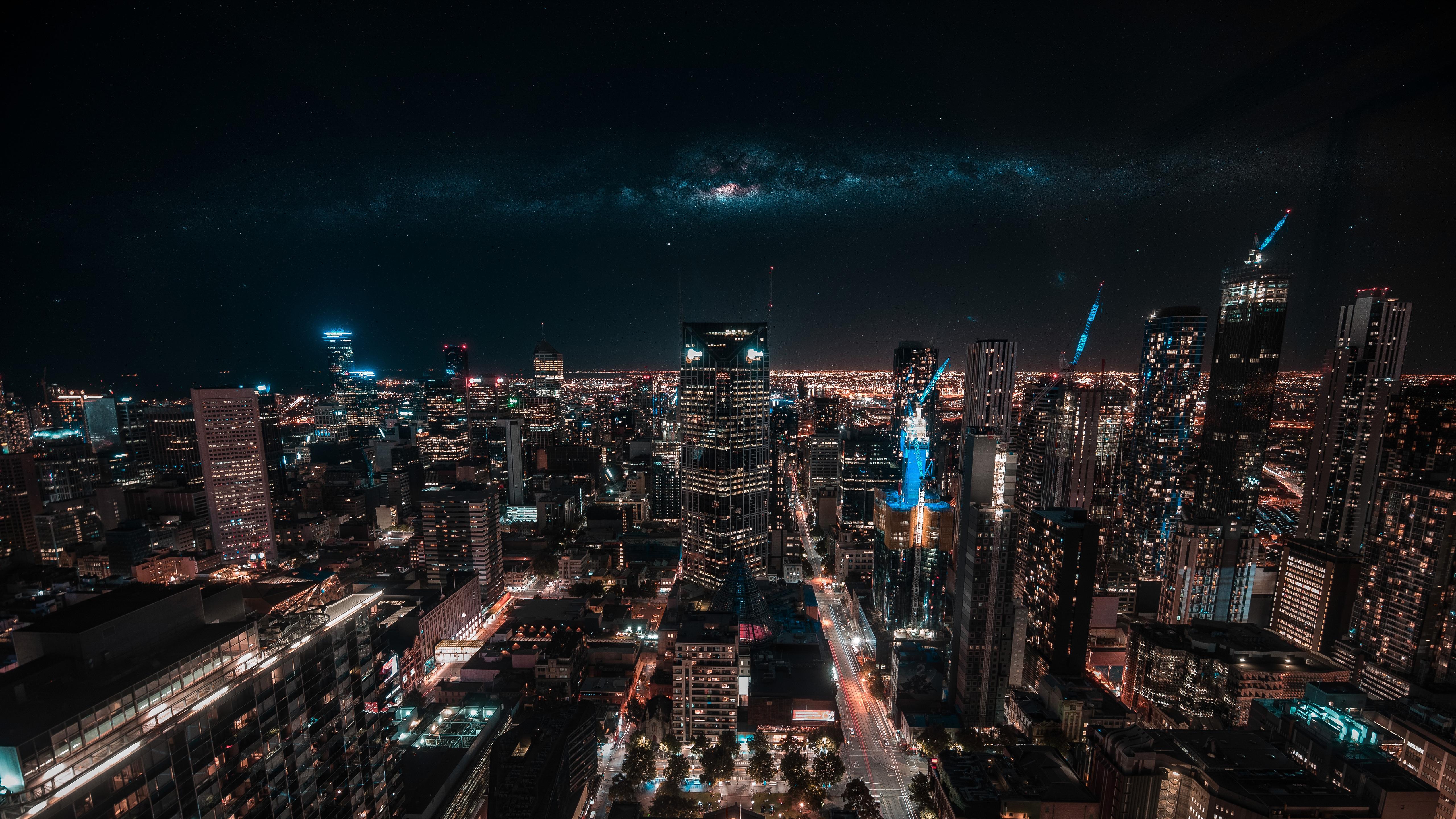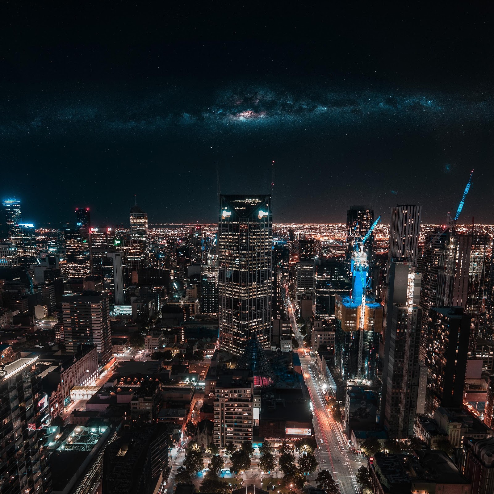 Cityscape, Night, Skyline, Urban 5K Desktop and Mobile Wallpaper Background with a maximum resolution of 5120x2880 px.