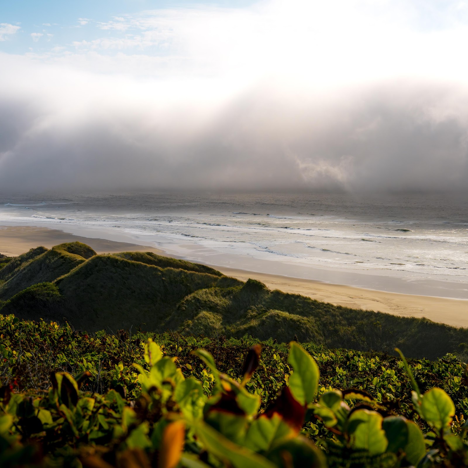 Coastal Landscape, Ocean View, Foggy Beach, Sand Dunes 4K Wallpaper Background (4611x3074)
