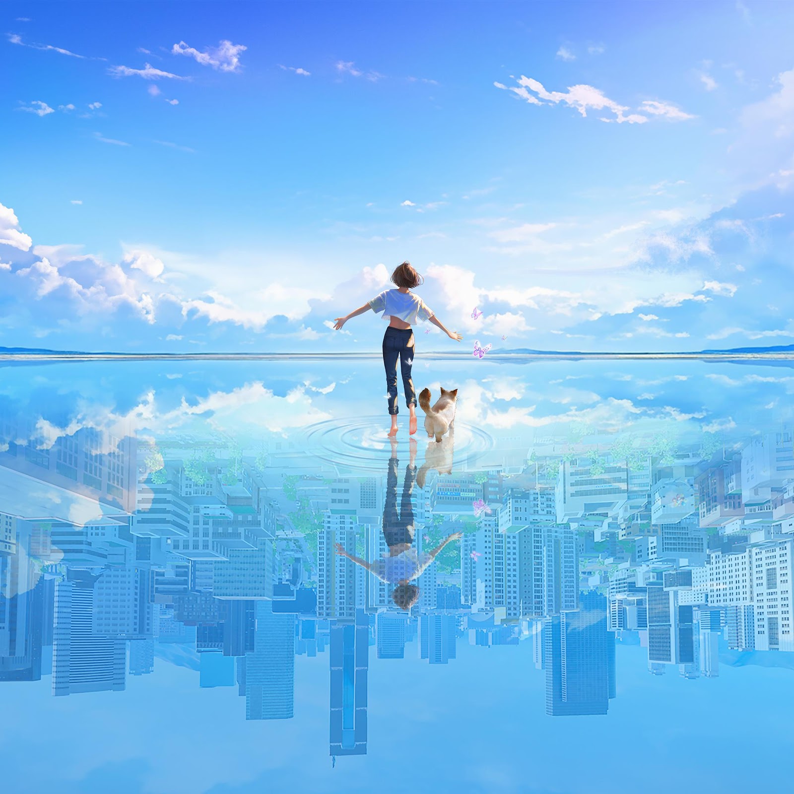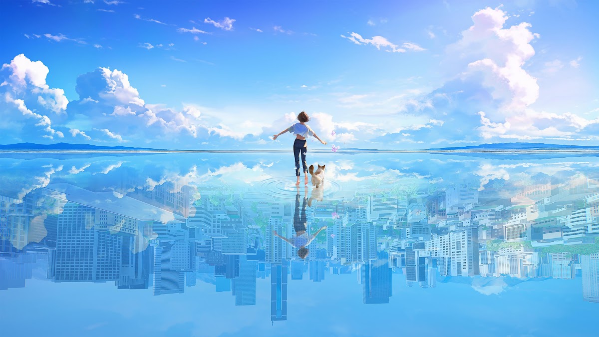 Dreamscape, Reflection, Anime, Cityscape 4K Desktop Wallpaper