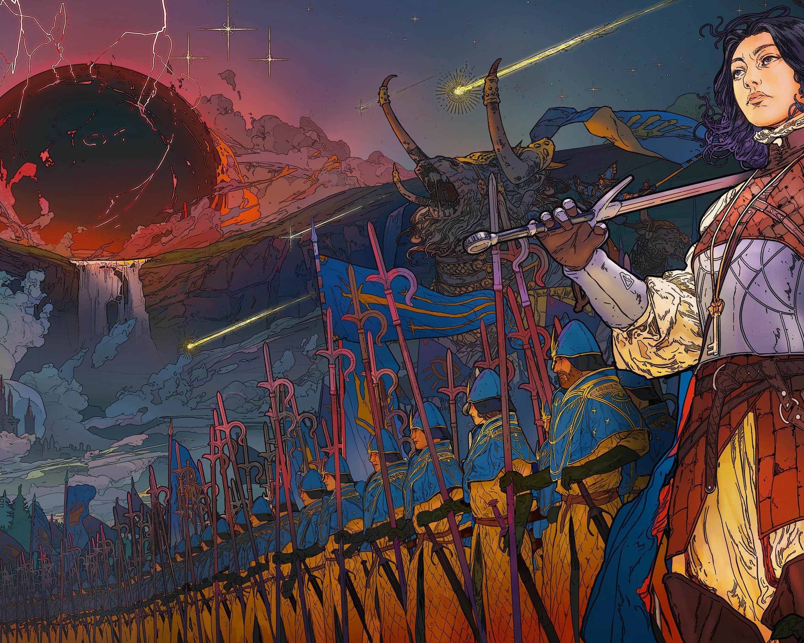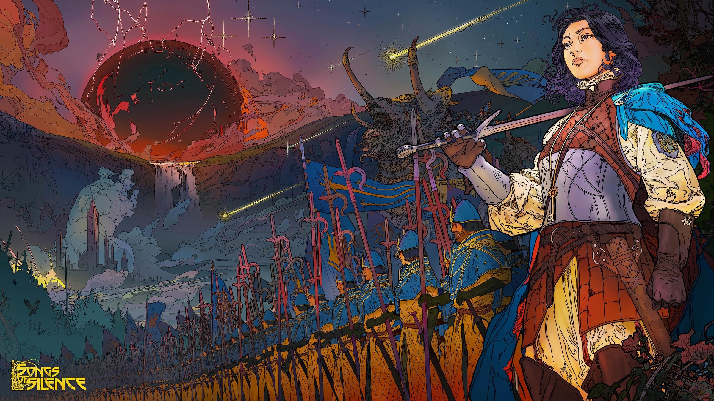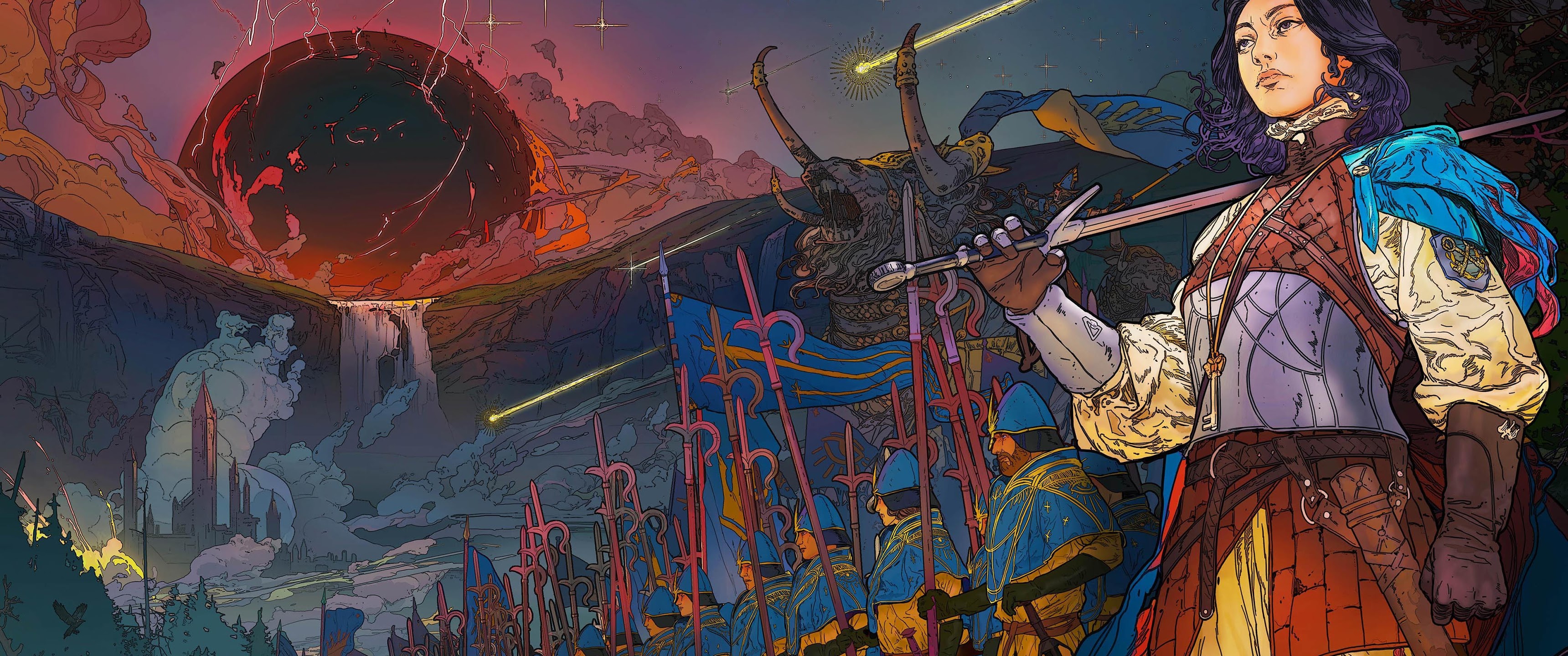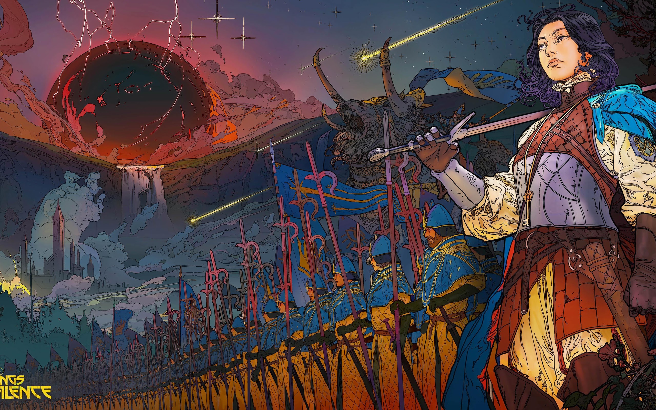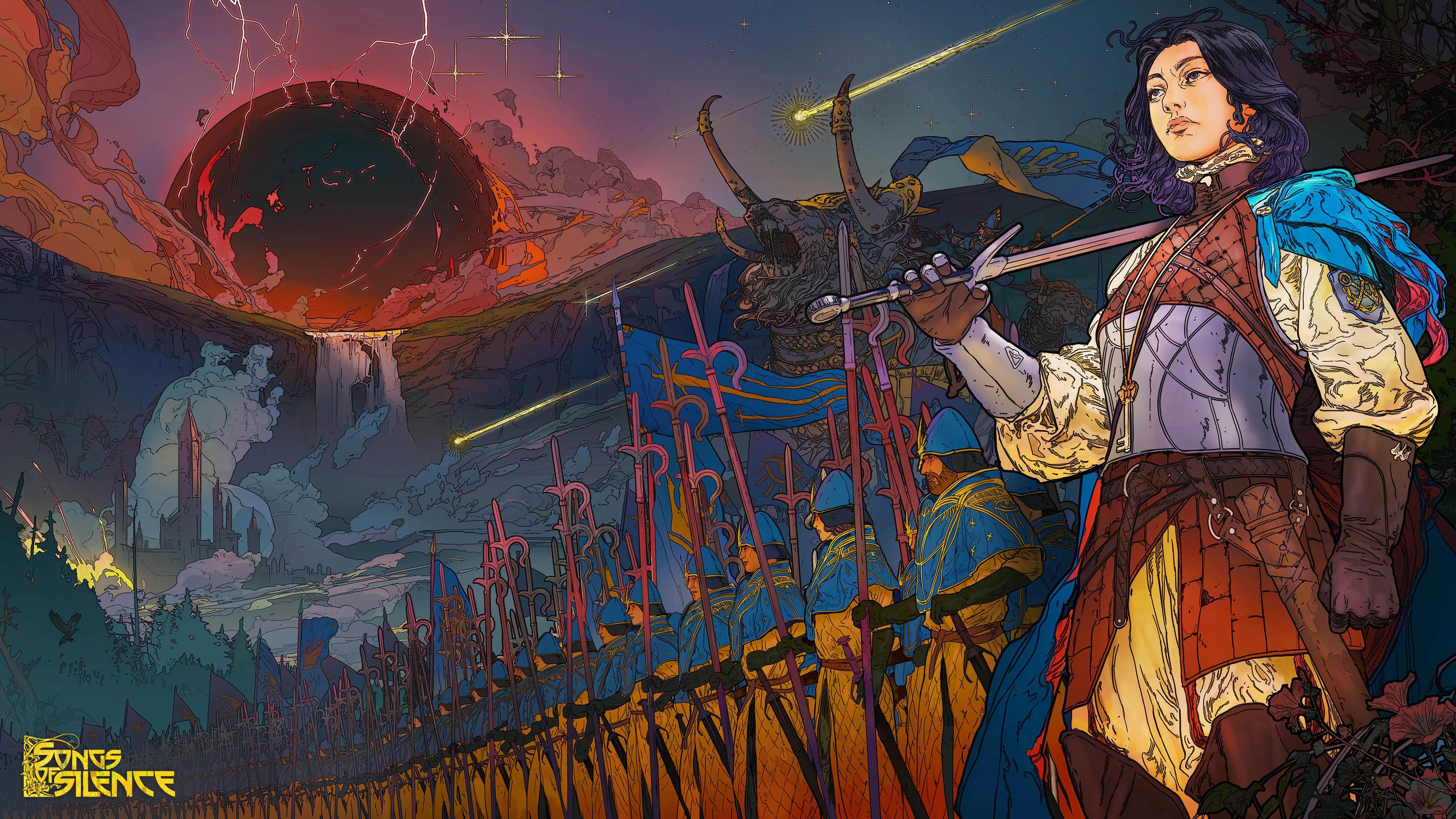 Fantasy Art, Digital Painting, Sword, Warrior 4K Desktop and Mobile Wallpaper Background with a maximum resolution of 4096x2304 px.