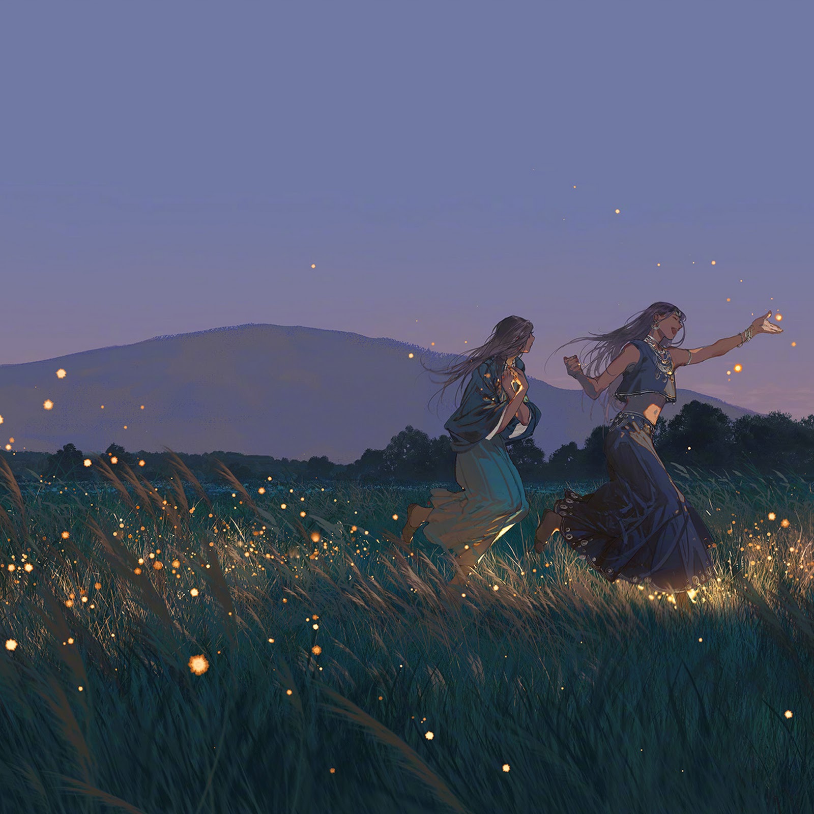 Fantasy Art, Field, Fireflies, Night Landscape Full HD Desktop and Mobile Wallpaper Background with a maximum resolution of 1920x1152 px.