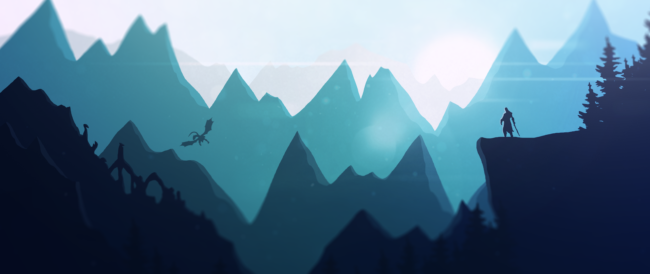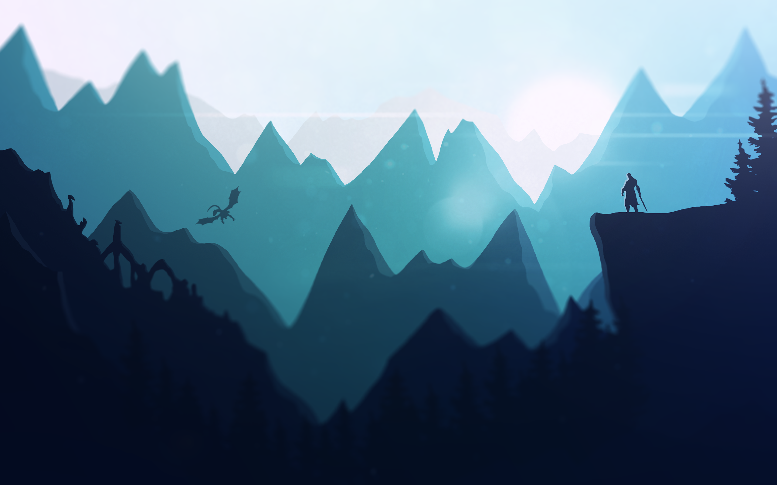 Fantasy, Dragon, Mountain, Warrior 4K Desktop Wallpaper
