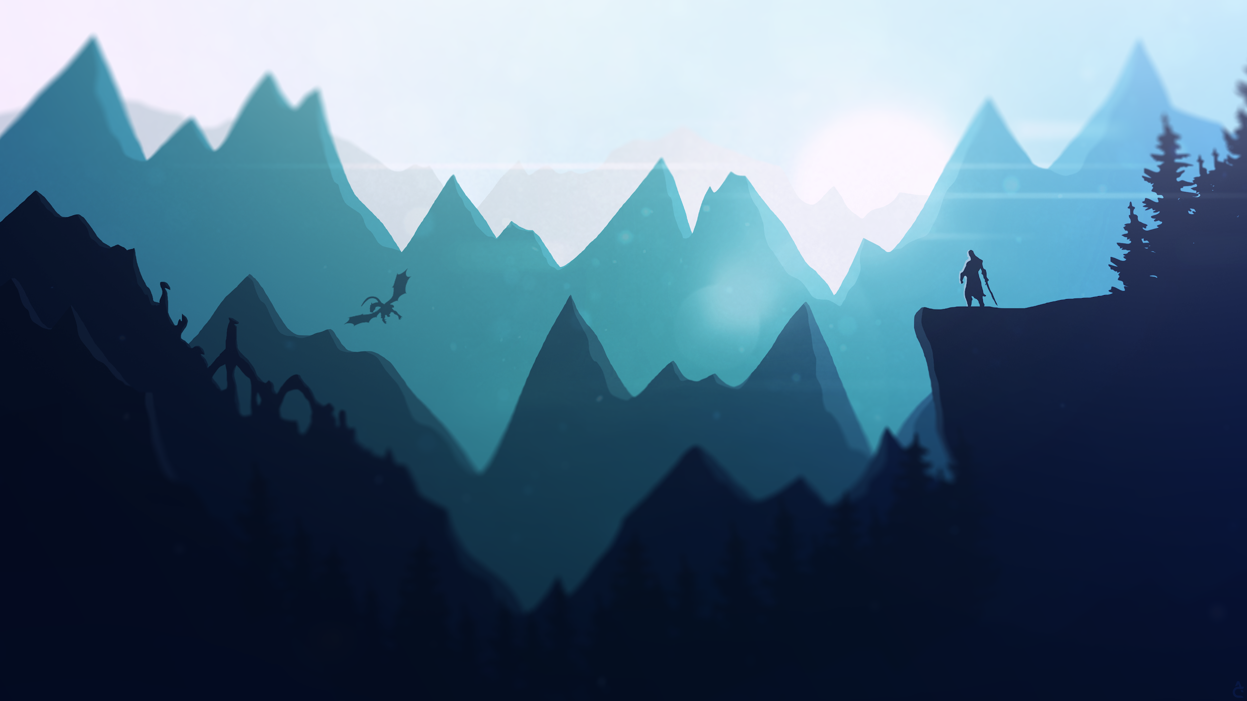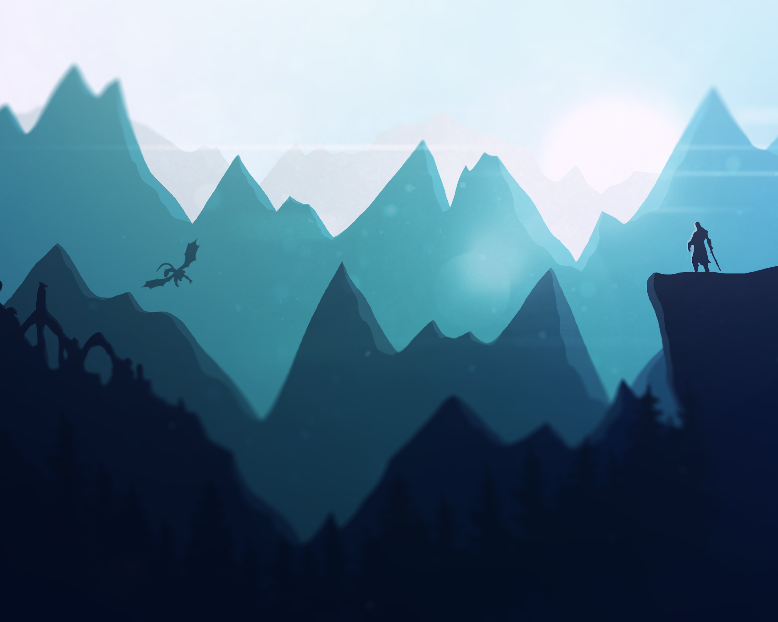 Fantasy, Dragon, Mountain, Warrior 4K Desktop and Mobile Wallpaper Background with a maximum resolution of 3840x2160 px.