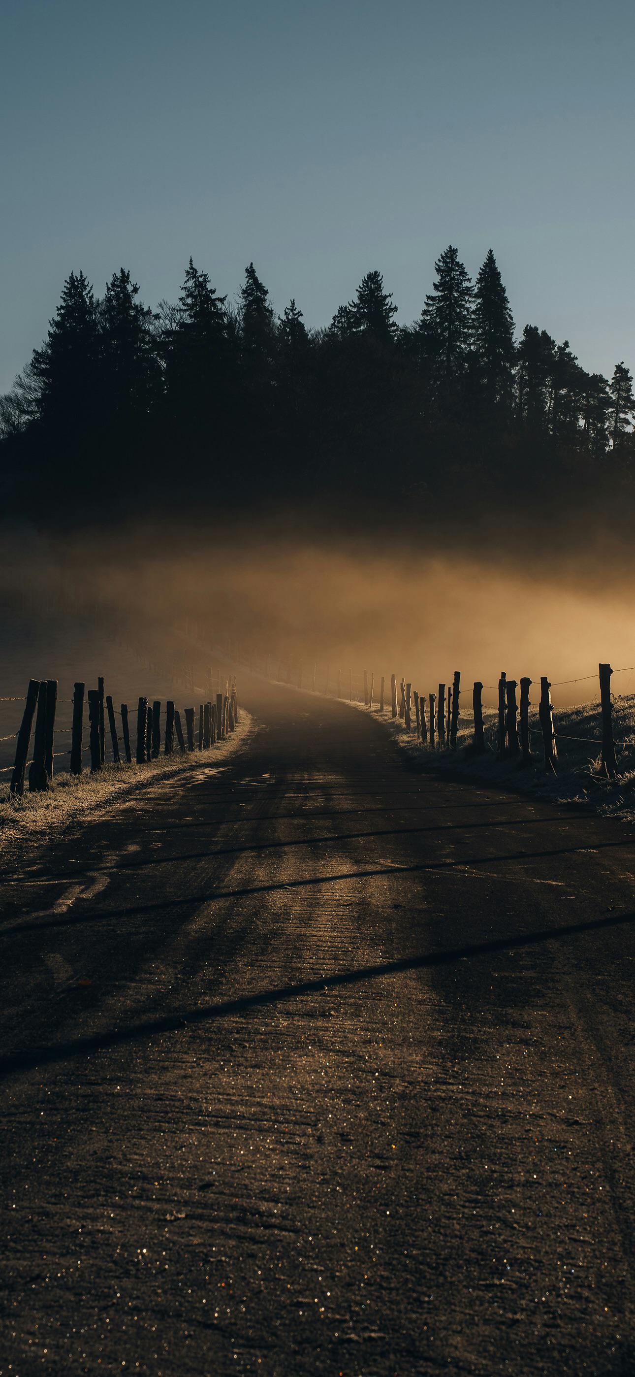 Foggy Road, Landscape, Rural Scene, Countryside Full HD iPhone Wallpaper Background with a maximum resolution of 1290x2796 px.