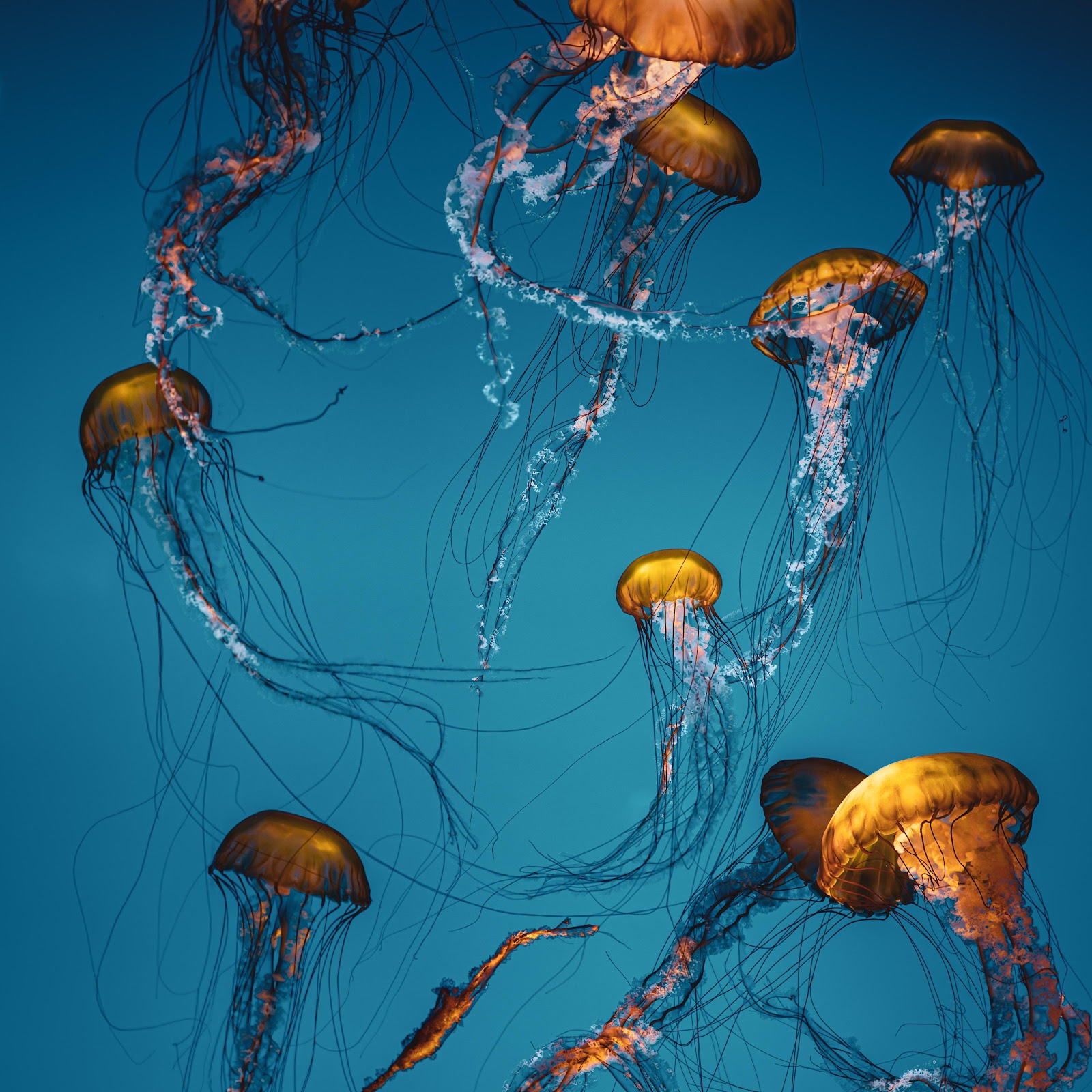 Jellyfish, Sea Life, Ocean, Aquatic 5K Desktop and Mobile Wallpaper Background with a maximum resolution of 6048x4024 px.