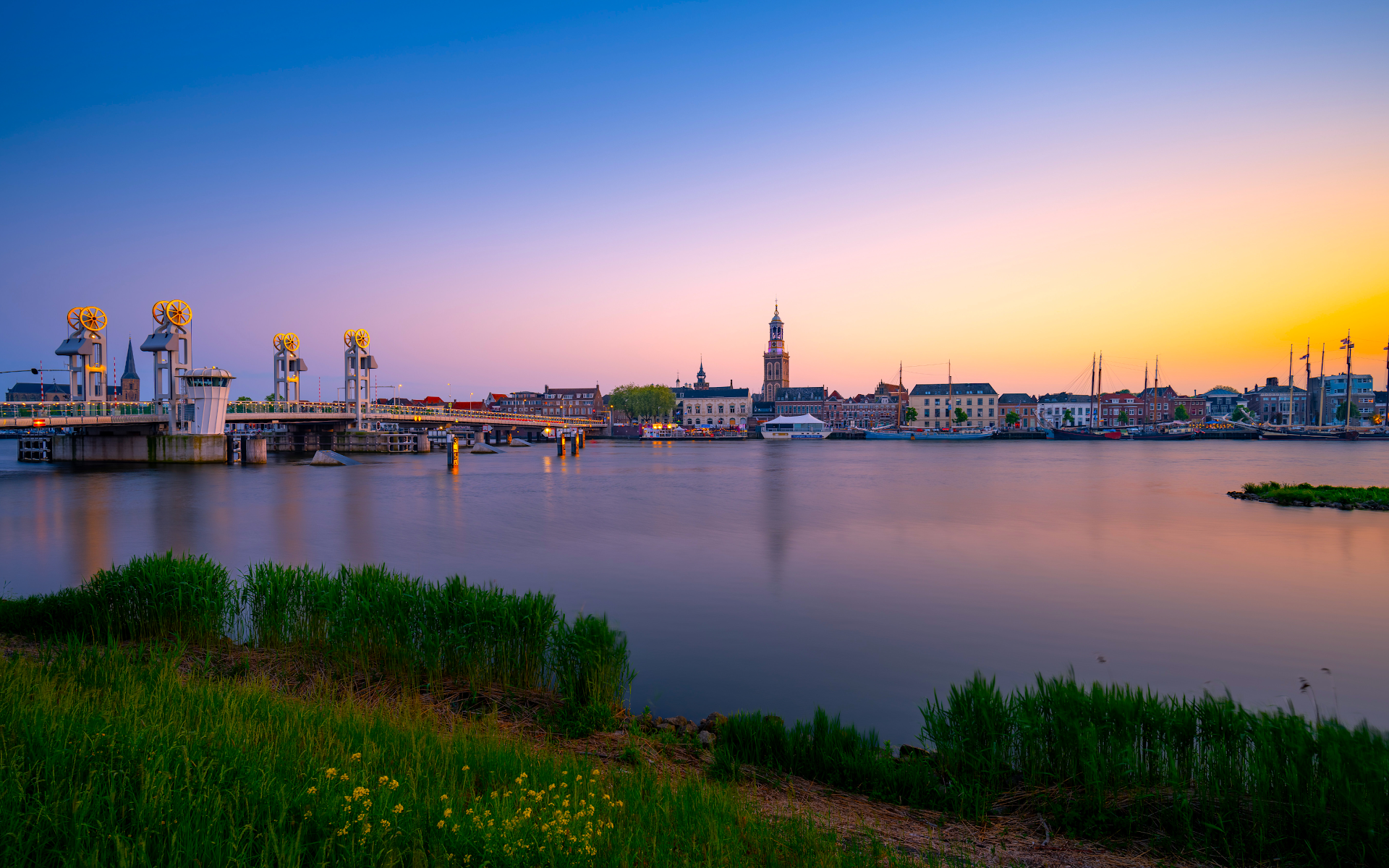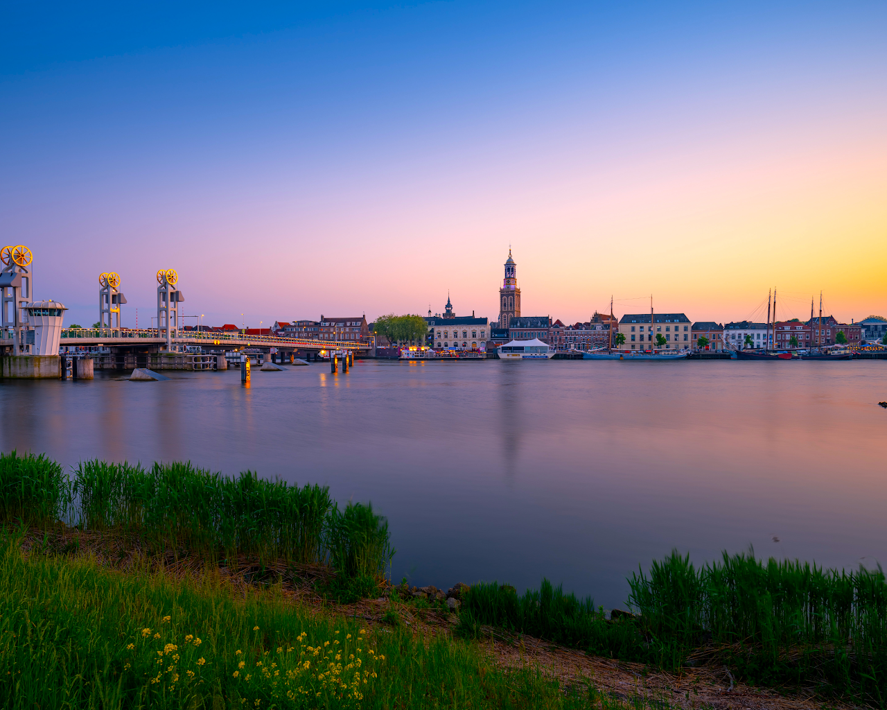Kampen, Netherlands, Cityscape, River 4K Desktop Wallpaper