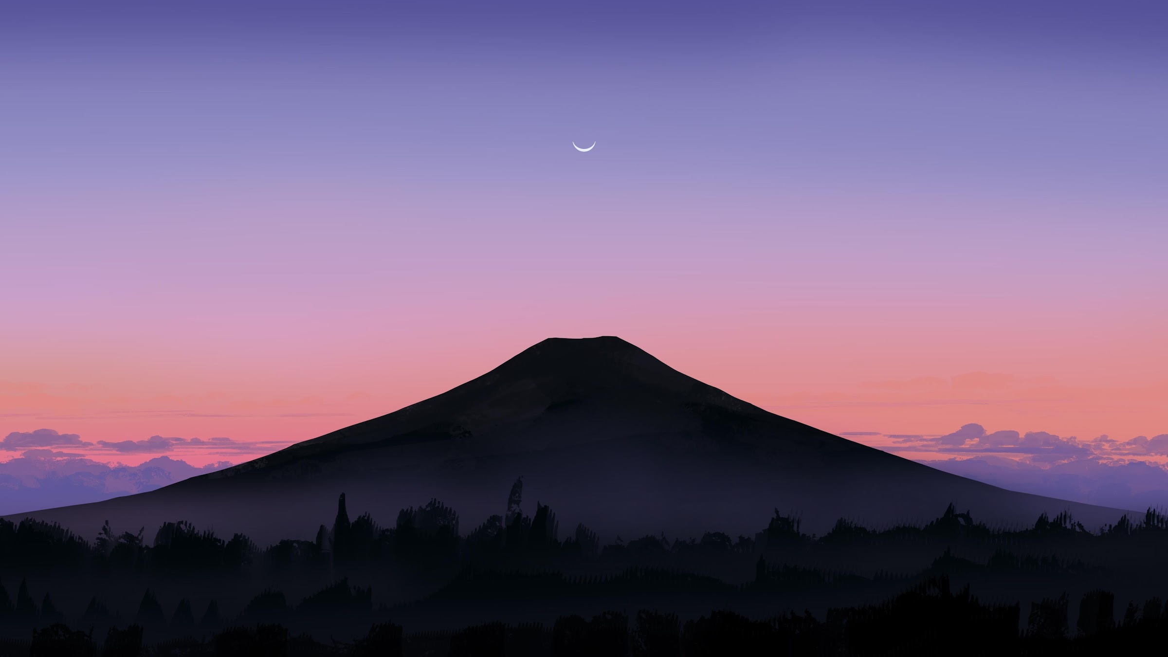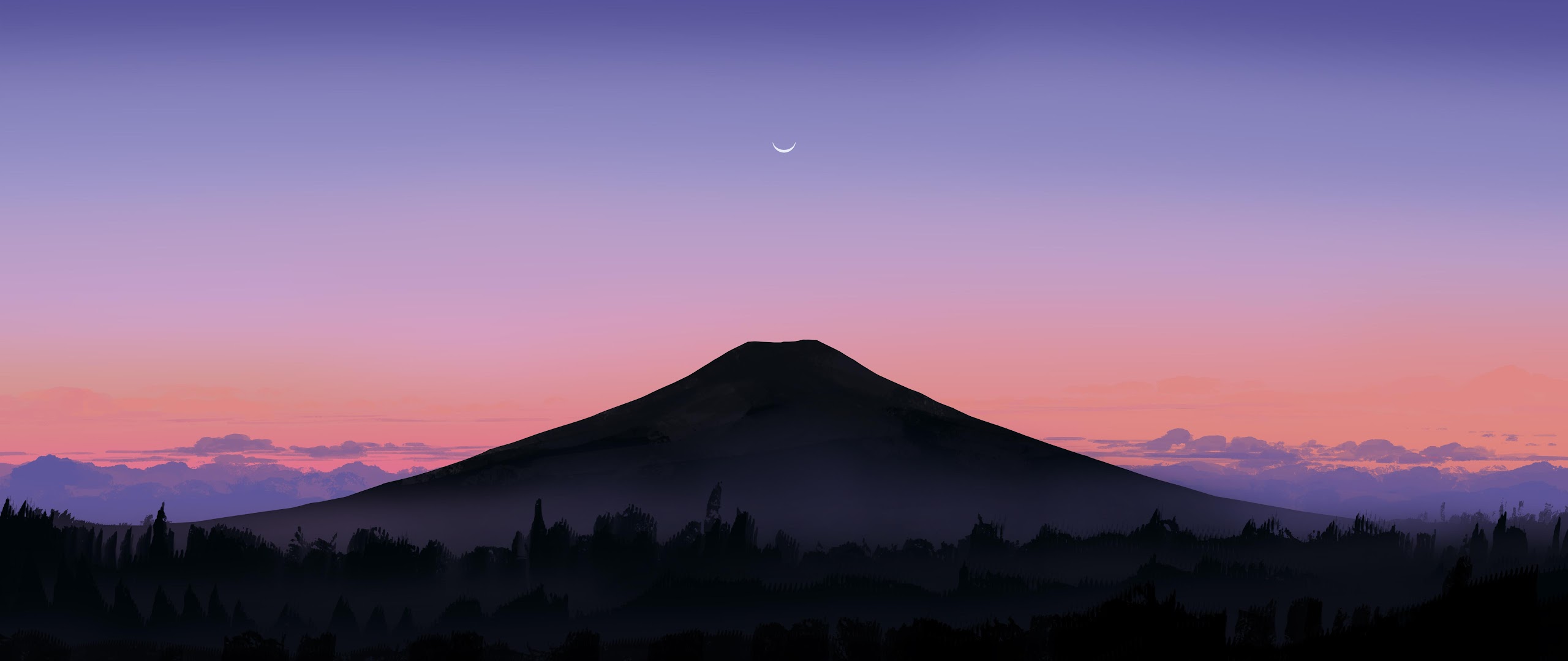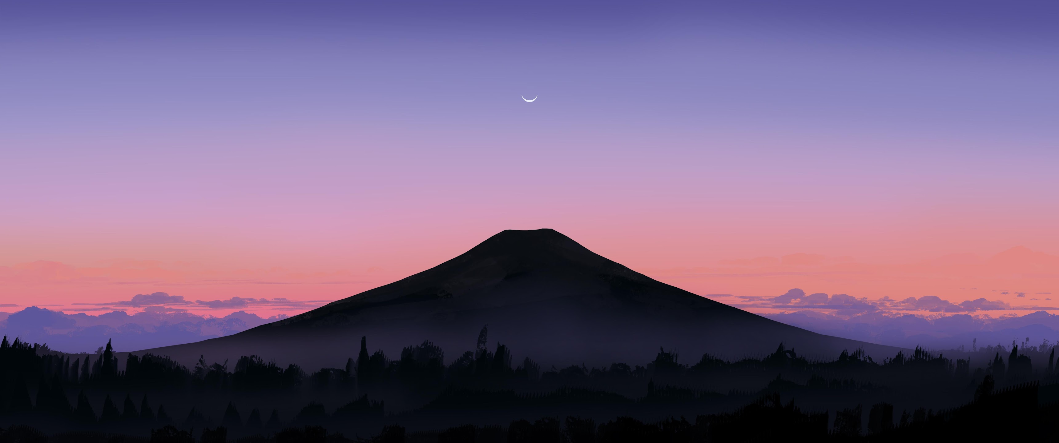 Mountain Landscape, Nature, Sunset, Dusk 4K Ultrawide Desktop and Mobile Wallpaper Background with a maximum resolution of 5640x2400 px.