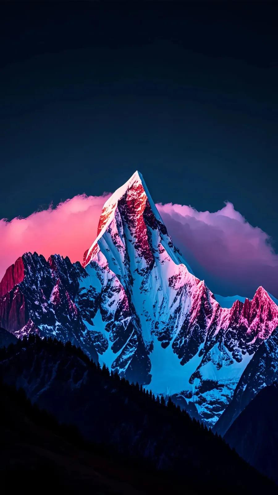 Mountain Peak, Snowy Mountains, Nature Landscape, Pink Clouds iPhone Wallpaper Background with a maximum resolution of 900x1600 px.
