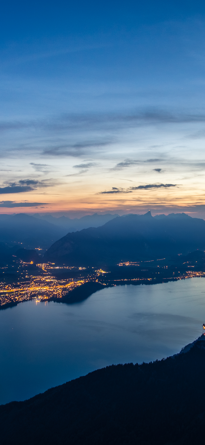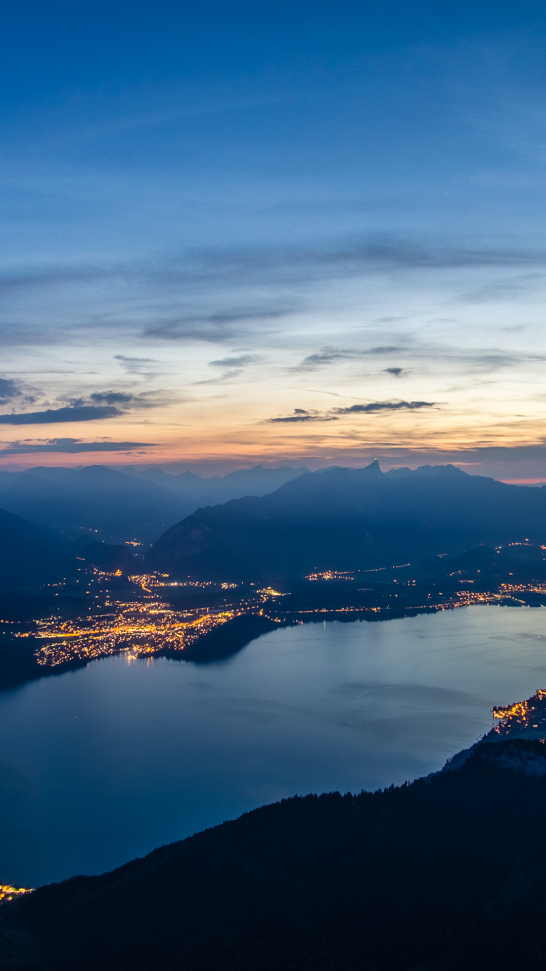 Mountainscape, Lake, Sunset, Cityscape 4K Desktop and Mobile Wallpaper Background with a maximum resolution of 3840x2160 px.