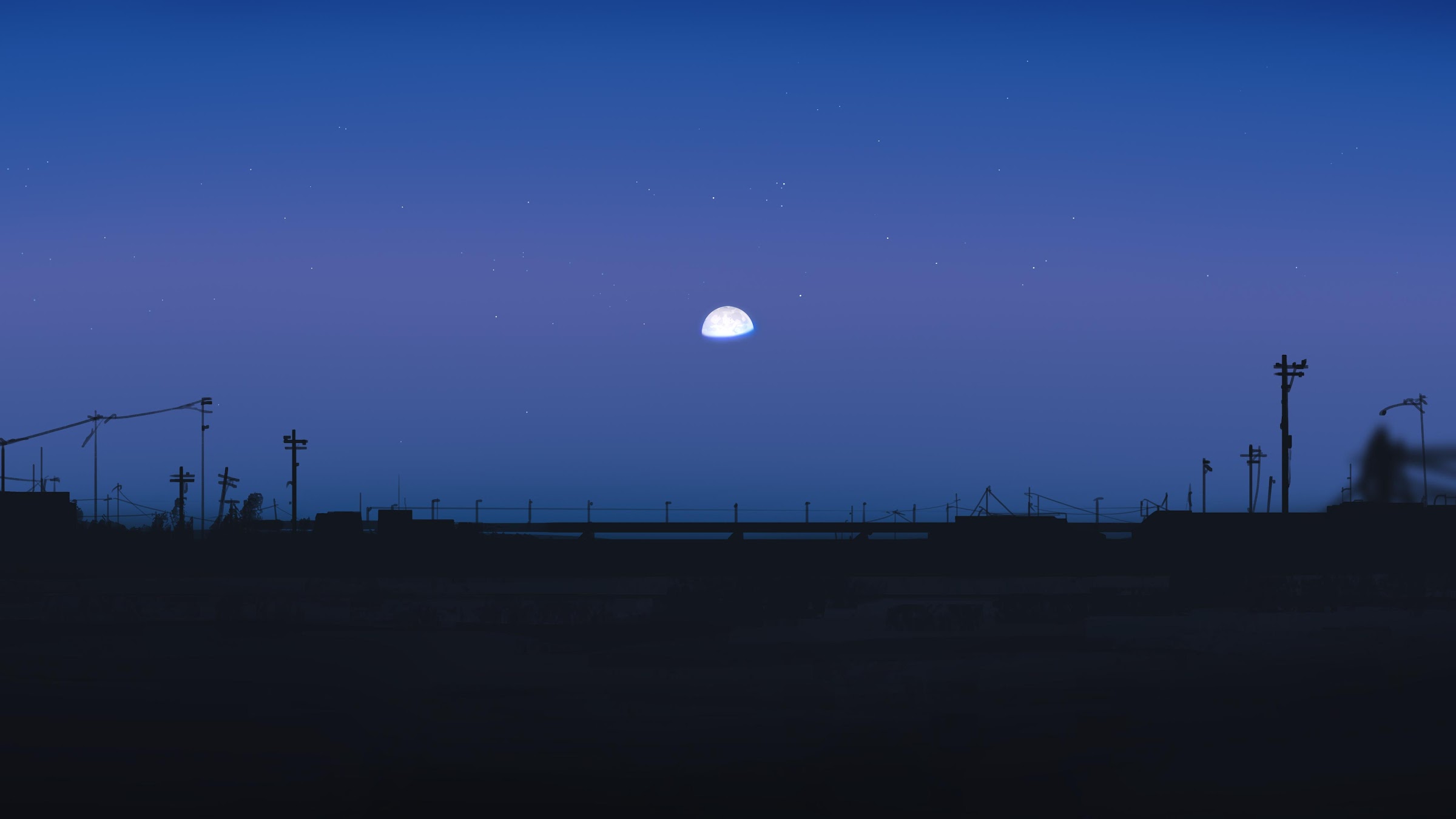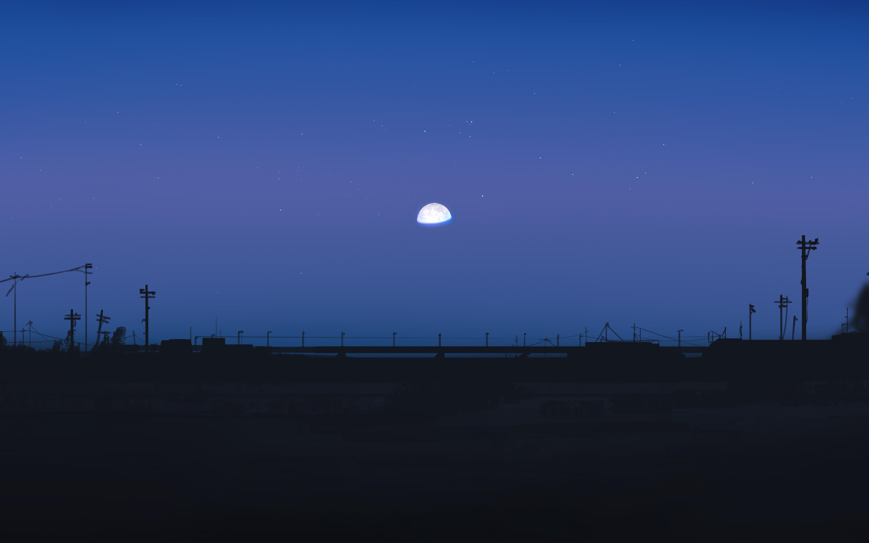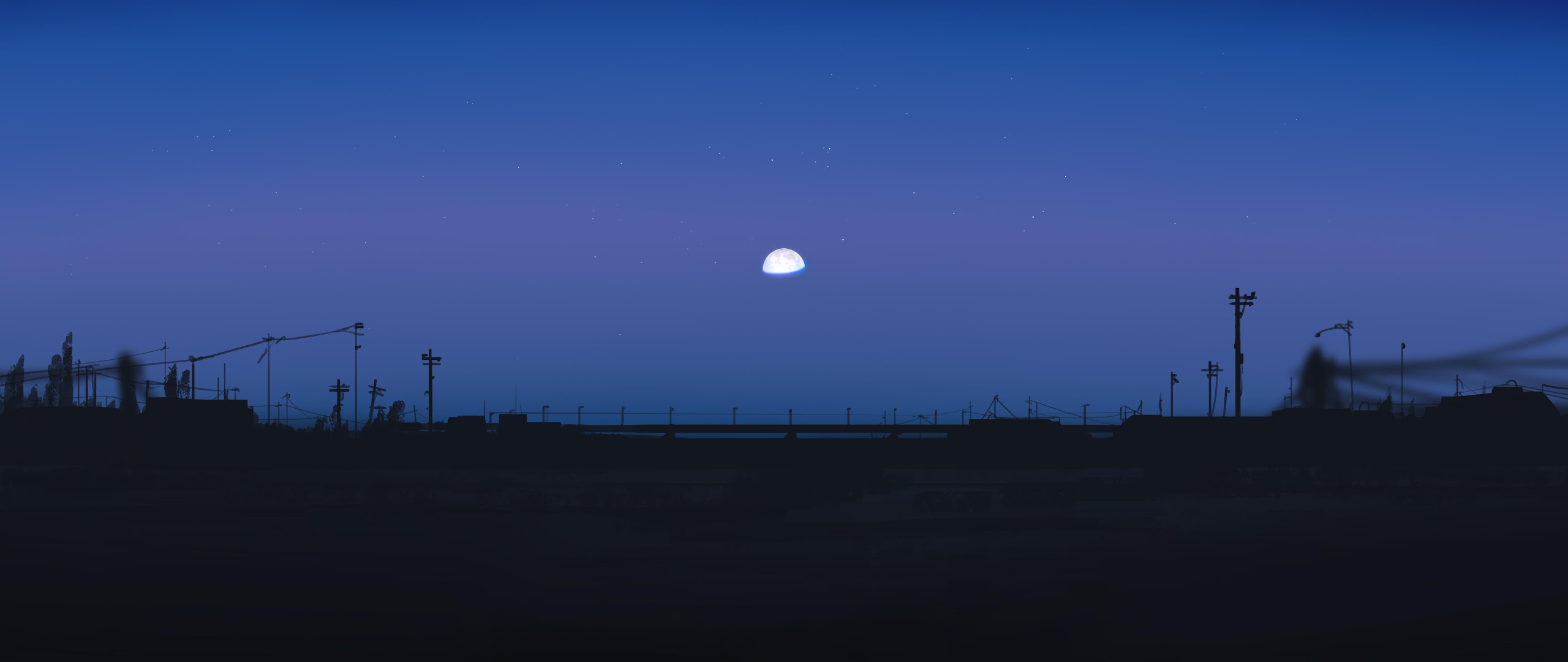 Nightscape, Moon, Silhouette, Urban Landscape 4K Ultrawide Desktop and Mobile Wallpaper Background with a maximum resolution of 5640x2400 px.
