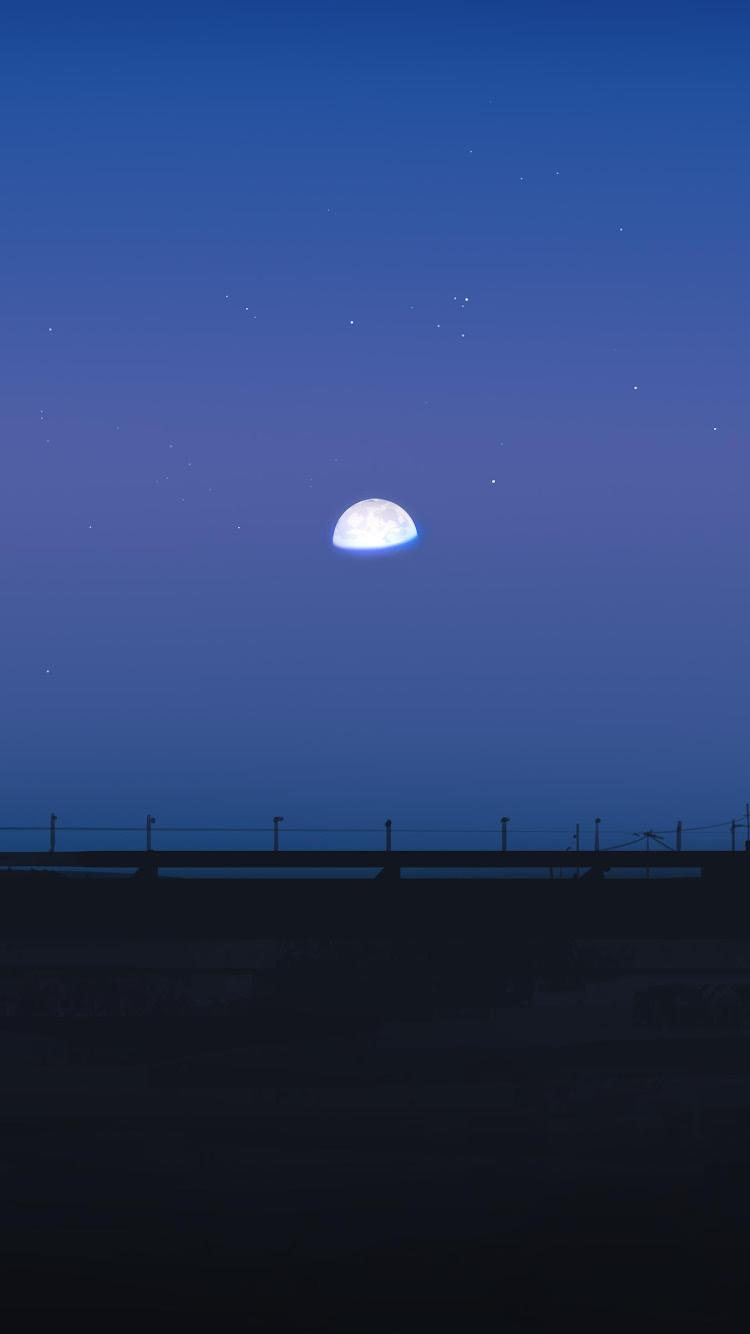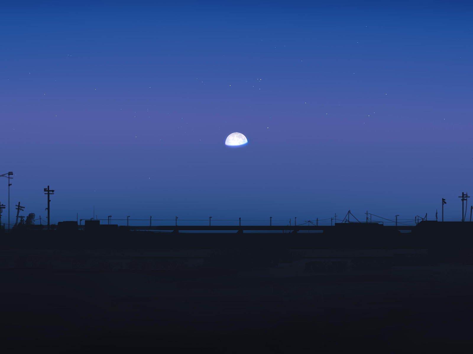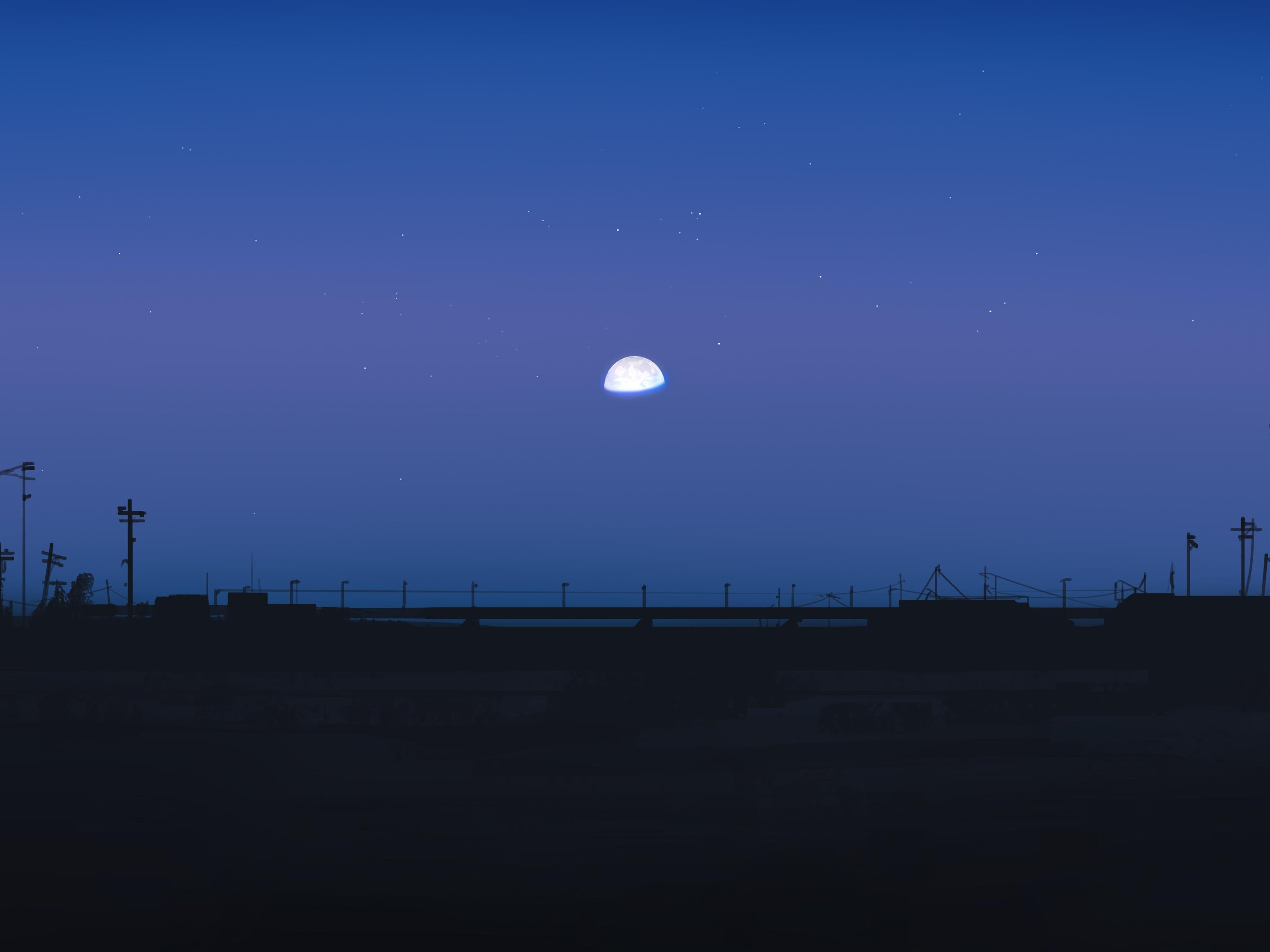 Nightscape, Moon, Silhouette, Urban Landscape 4K Ultrawide Desktop and Mobile Wallpaper Background with a maximum resolution of 5640x2400 px.
